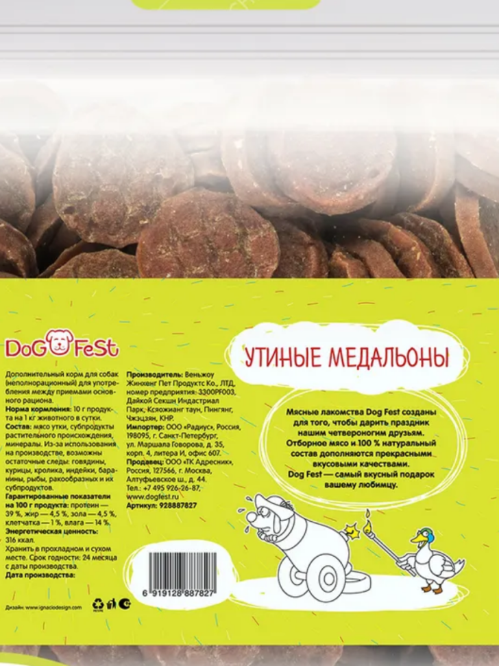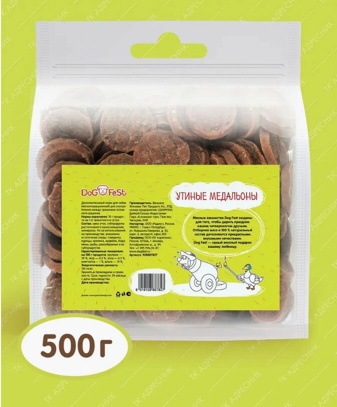 DOG'S FEST Утиные медальоны для собак 500 г интересное: