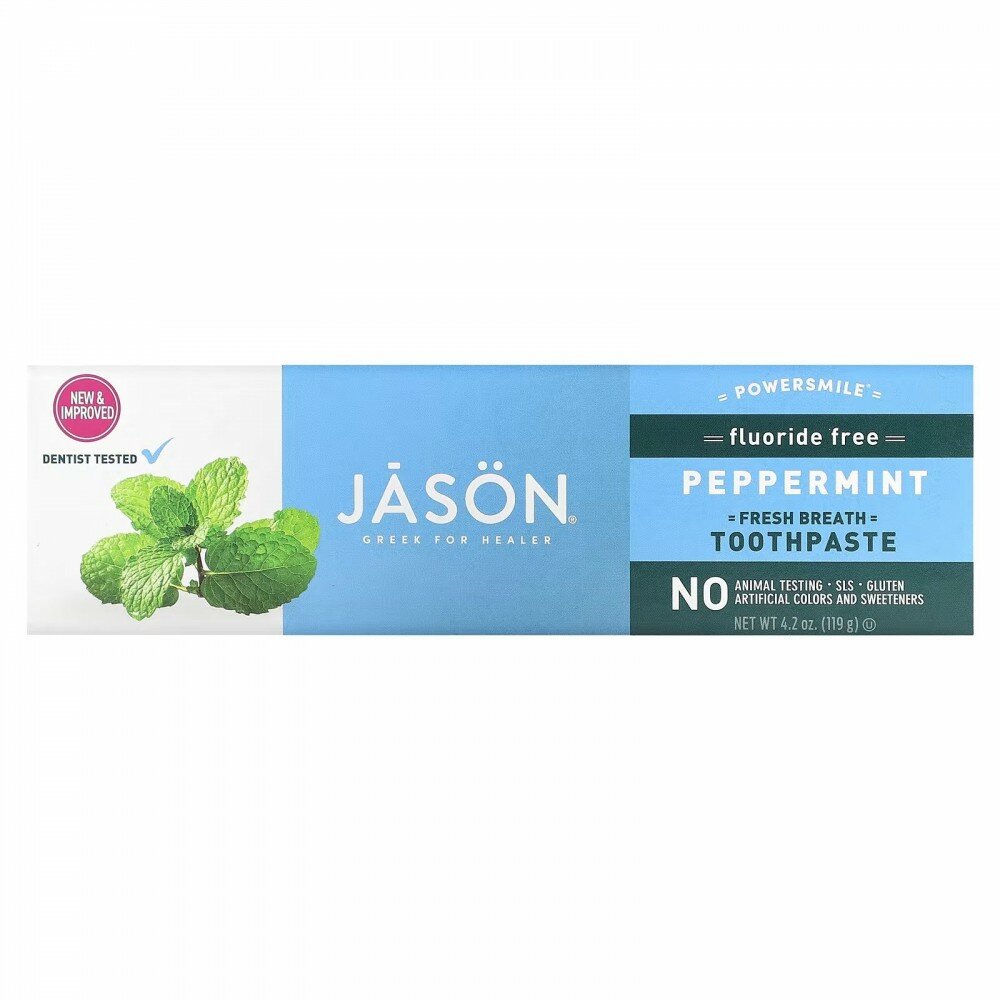 Купить Jason Natural, Powersmile, зубная паста для свежего дыхания, без фтора, перечная мята, 119 г