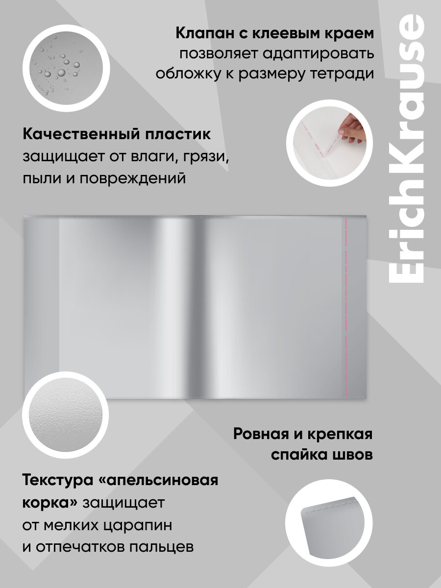 ErichKrause Набор обложек ПП 10 шт, 212 х 395 мм, 80 мкм, ErichKrause "Fizzy Clear", для тетрадей и дневников, с клеевым краем и увеличенным клапаном, с тиснением