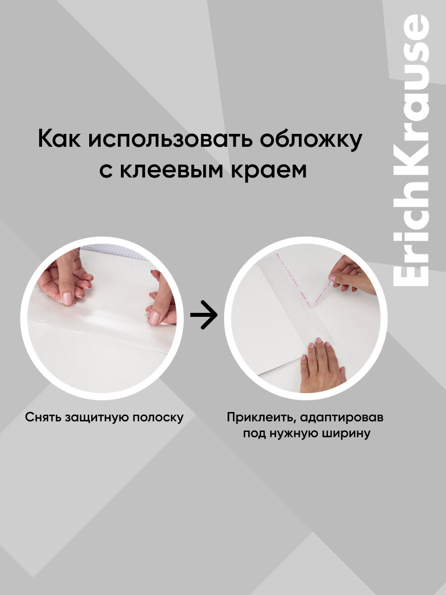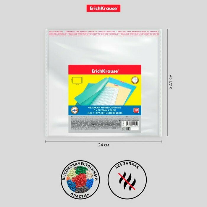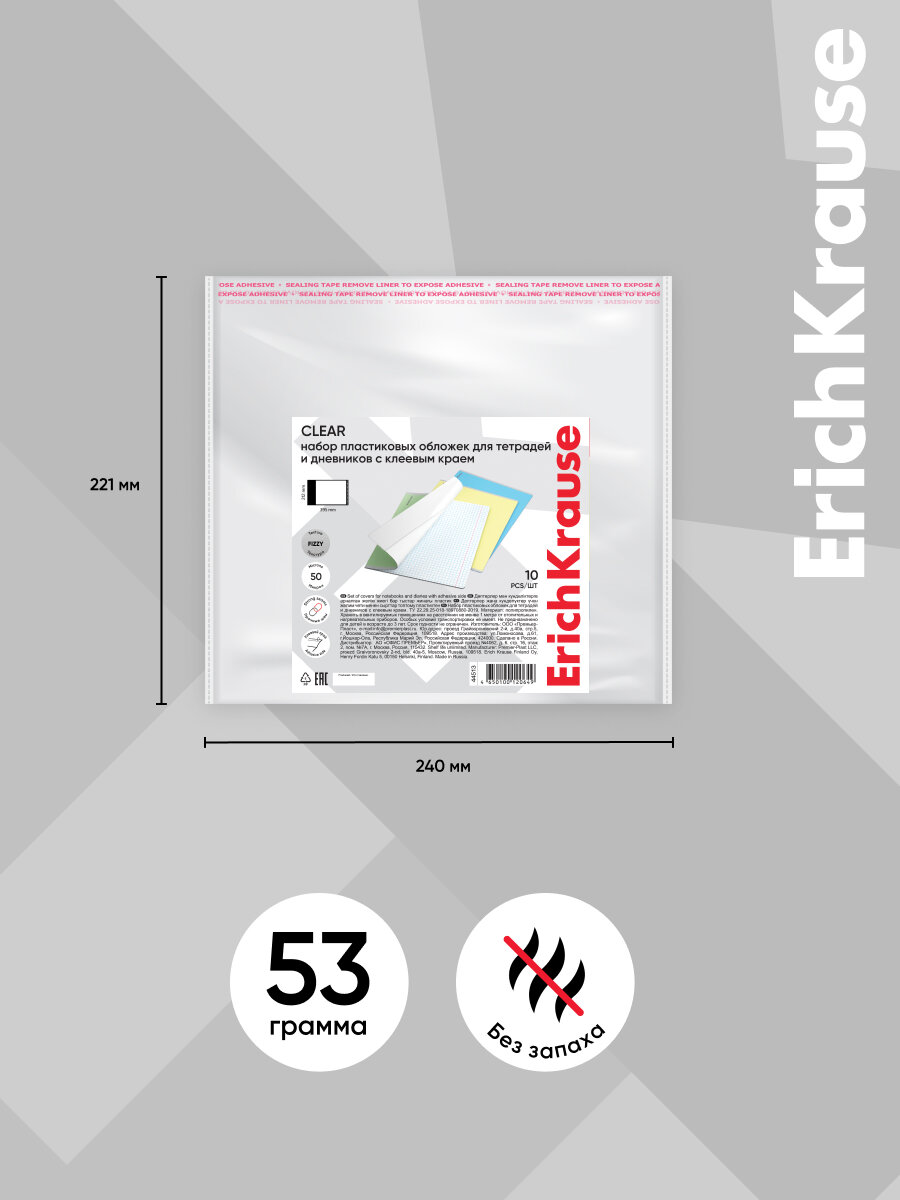 ErichKrause Набор обложек ПП 10 штук, 212 х 395 мм, 50 мкм, для тетрадей и дневников, с клеевым краем, универсальные