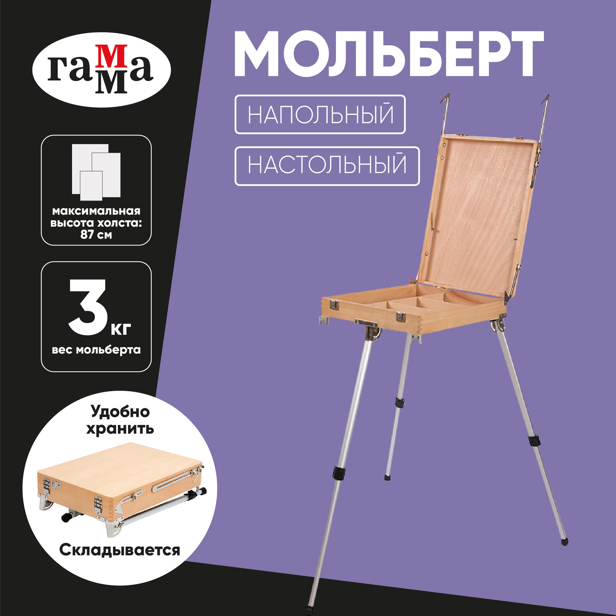 Гамма Этюдник с палитрой "Московская палитра" 82*100*140(183)см для холста 87см, бук