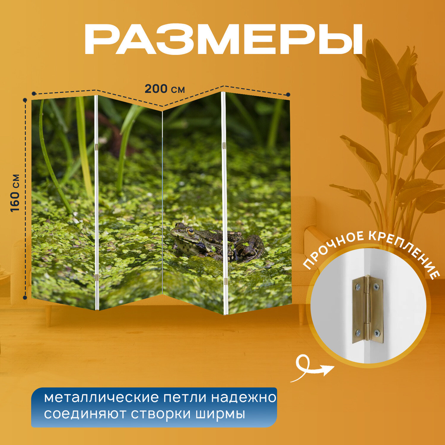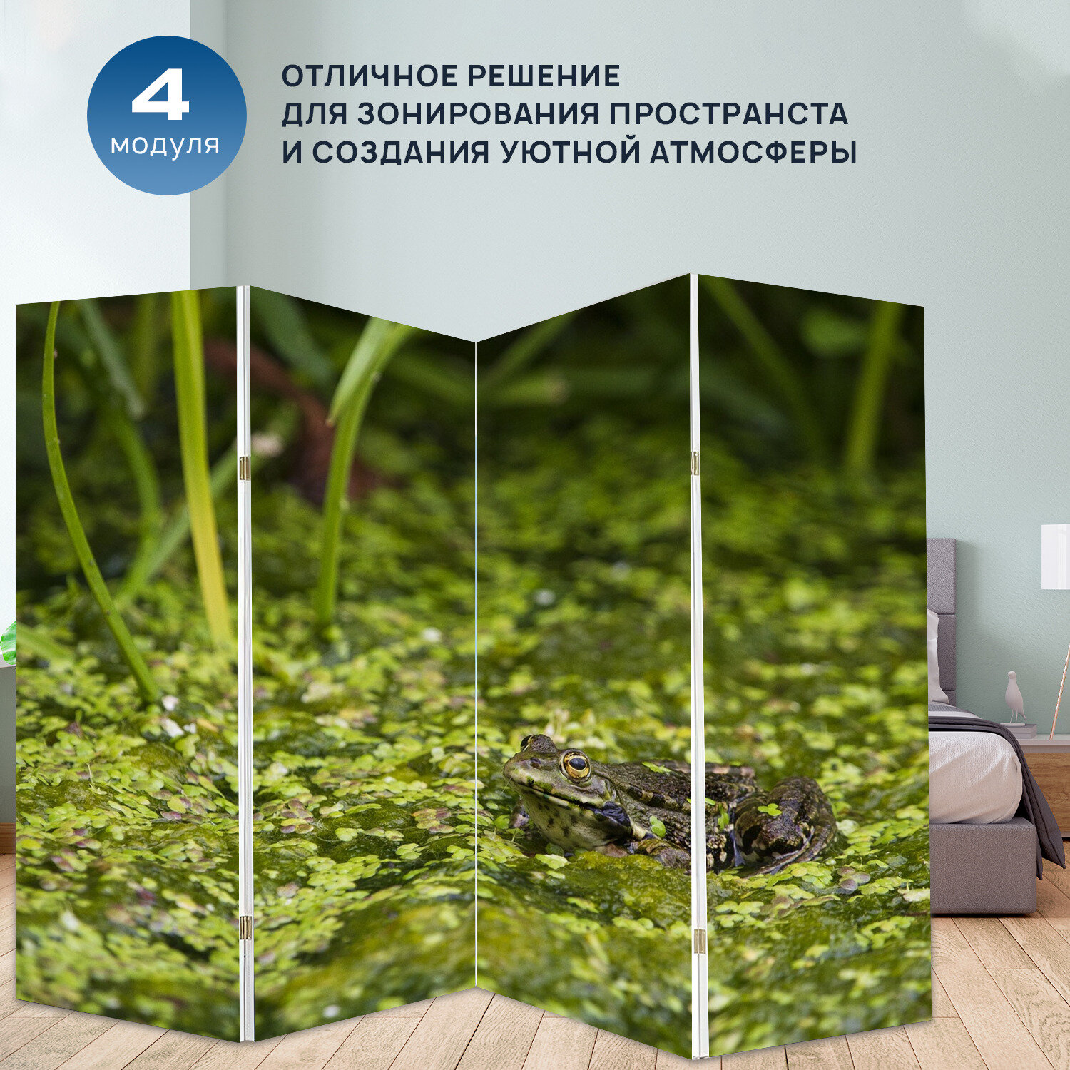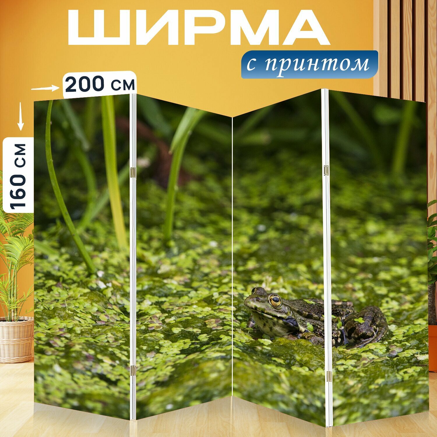 Ширма "Животное, верт, лягушка" раскладная перегородка для зонирования с принтом на холсте интересное: