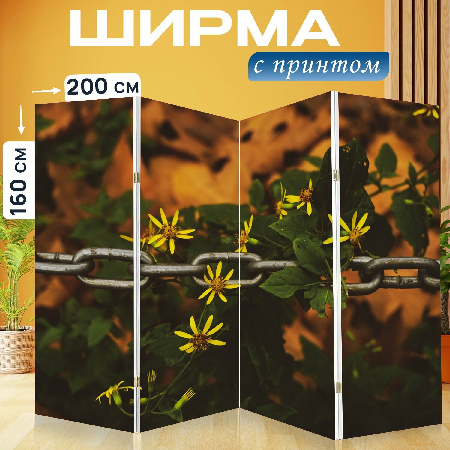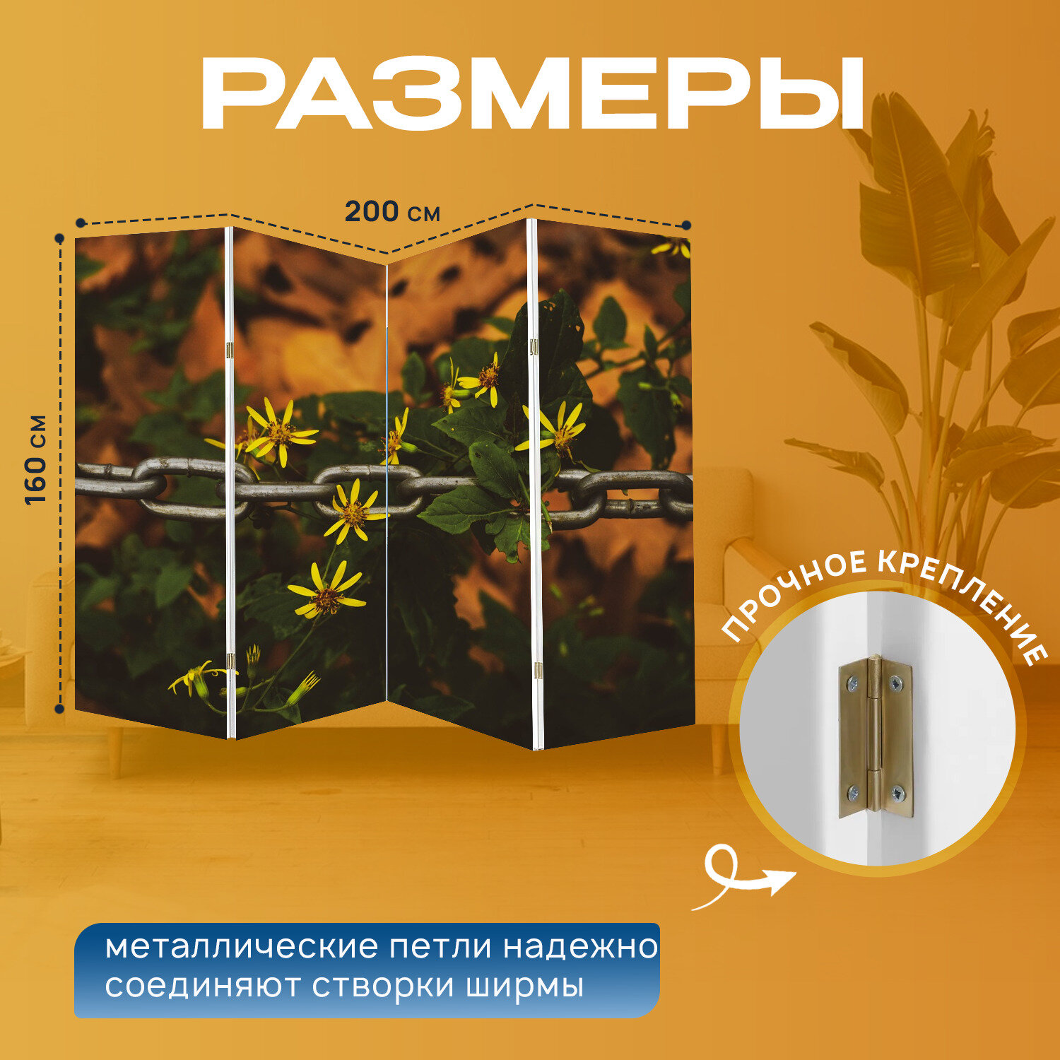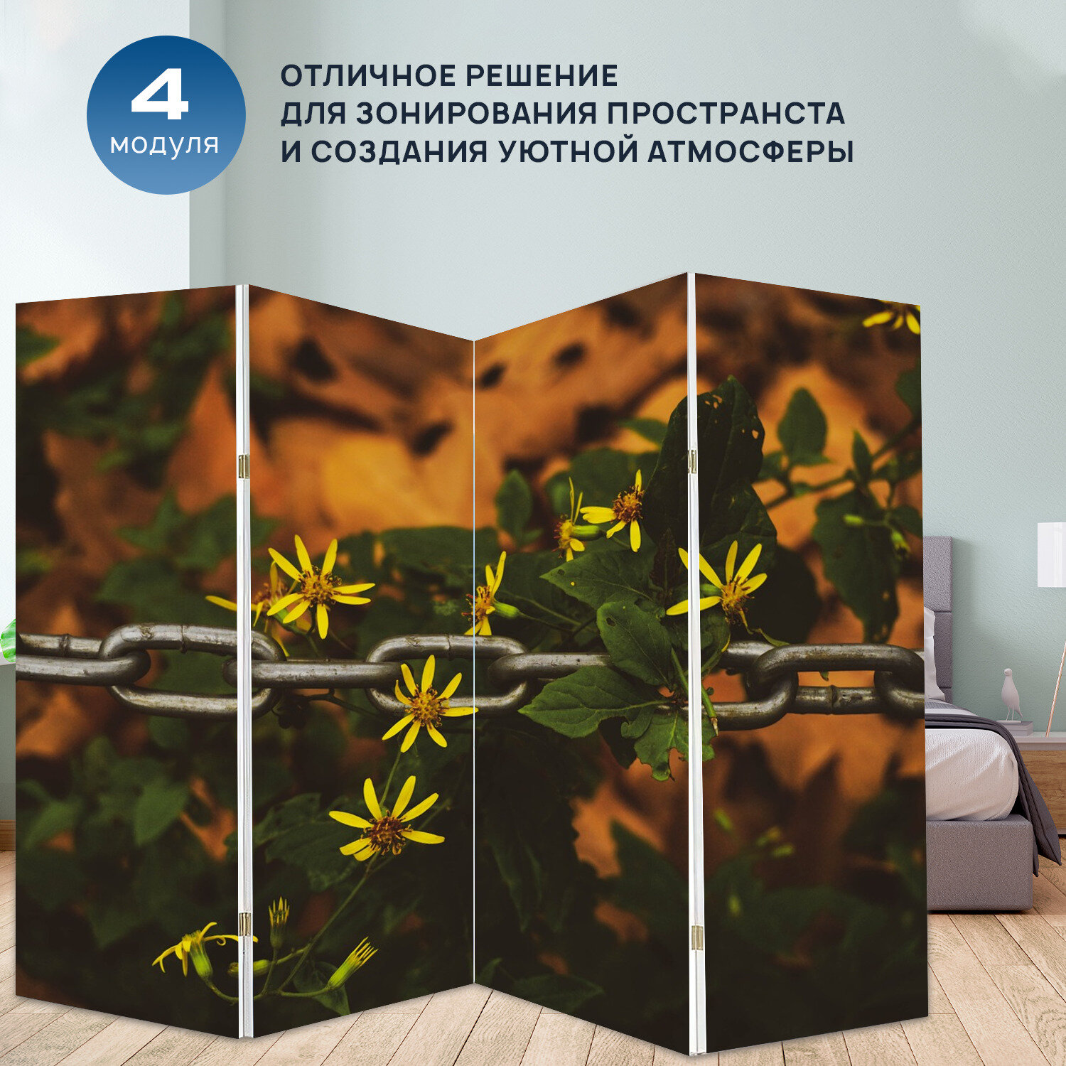 Ширма "Цепь, цветы, завод" перегородка для зонирования комнаты с принтом 280x175 см. на холсте