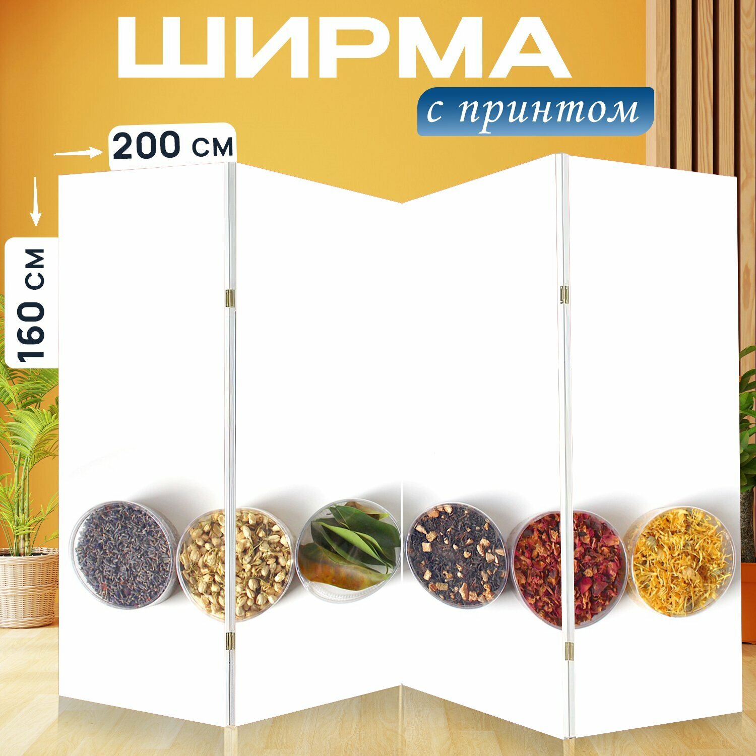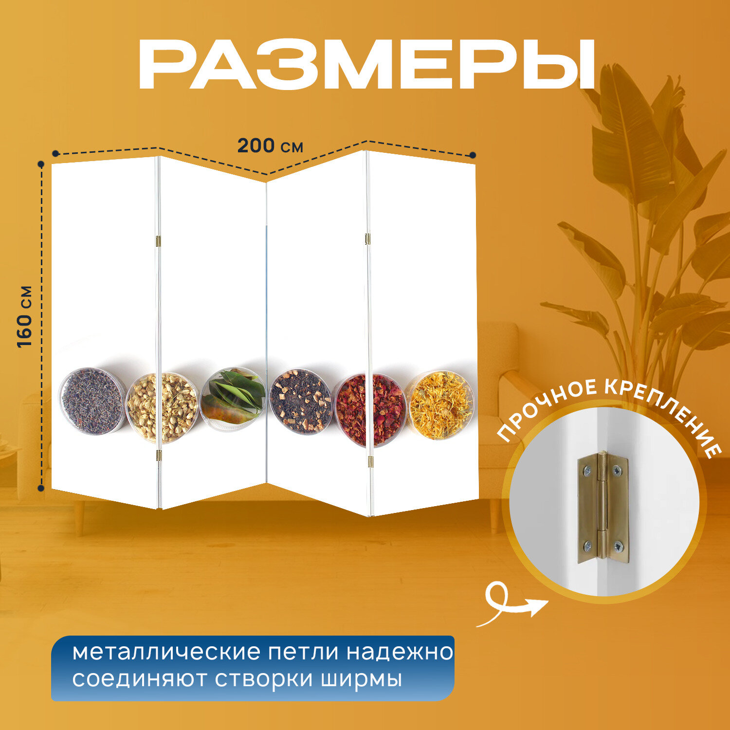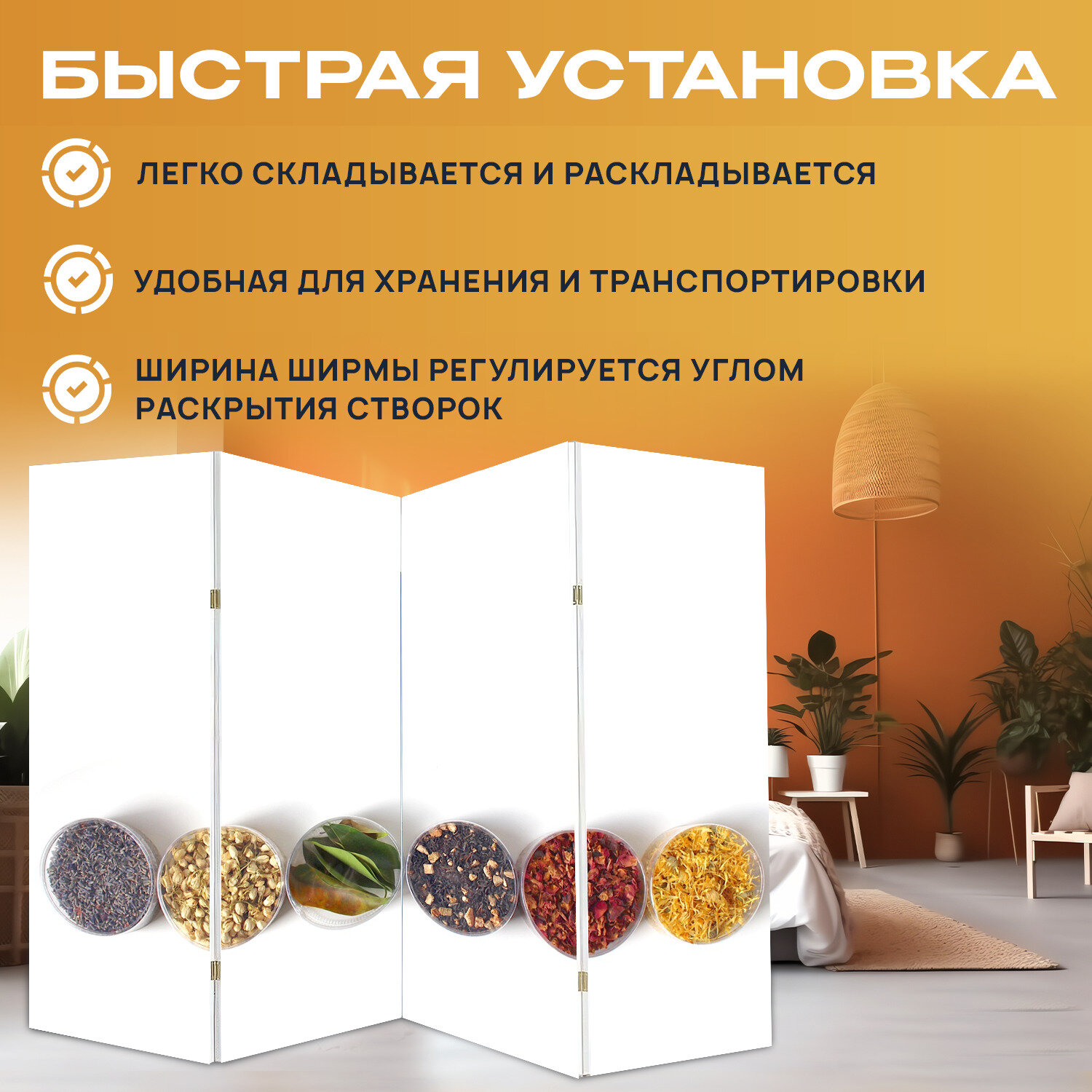Ширма "Засушенные лепестки, сушеные листья, контейнеры" раскладная перегородка для зонирования с принтом на холсте интересное: