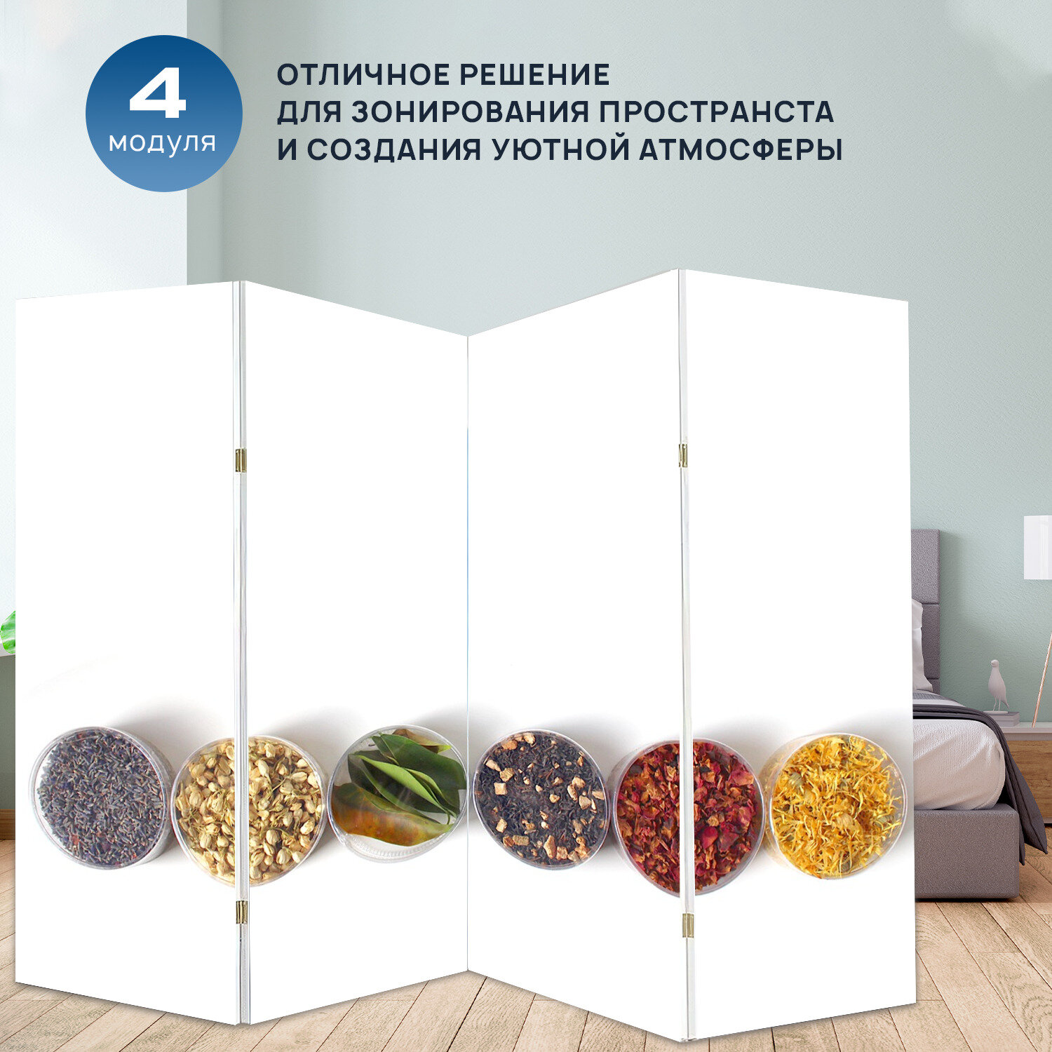 Купить Ширма "Засушенные лепестки, сушеные листья, контейнеры" раскладная перегородка для зонирования с принтом на холсте