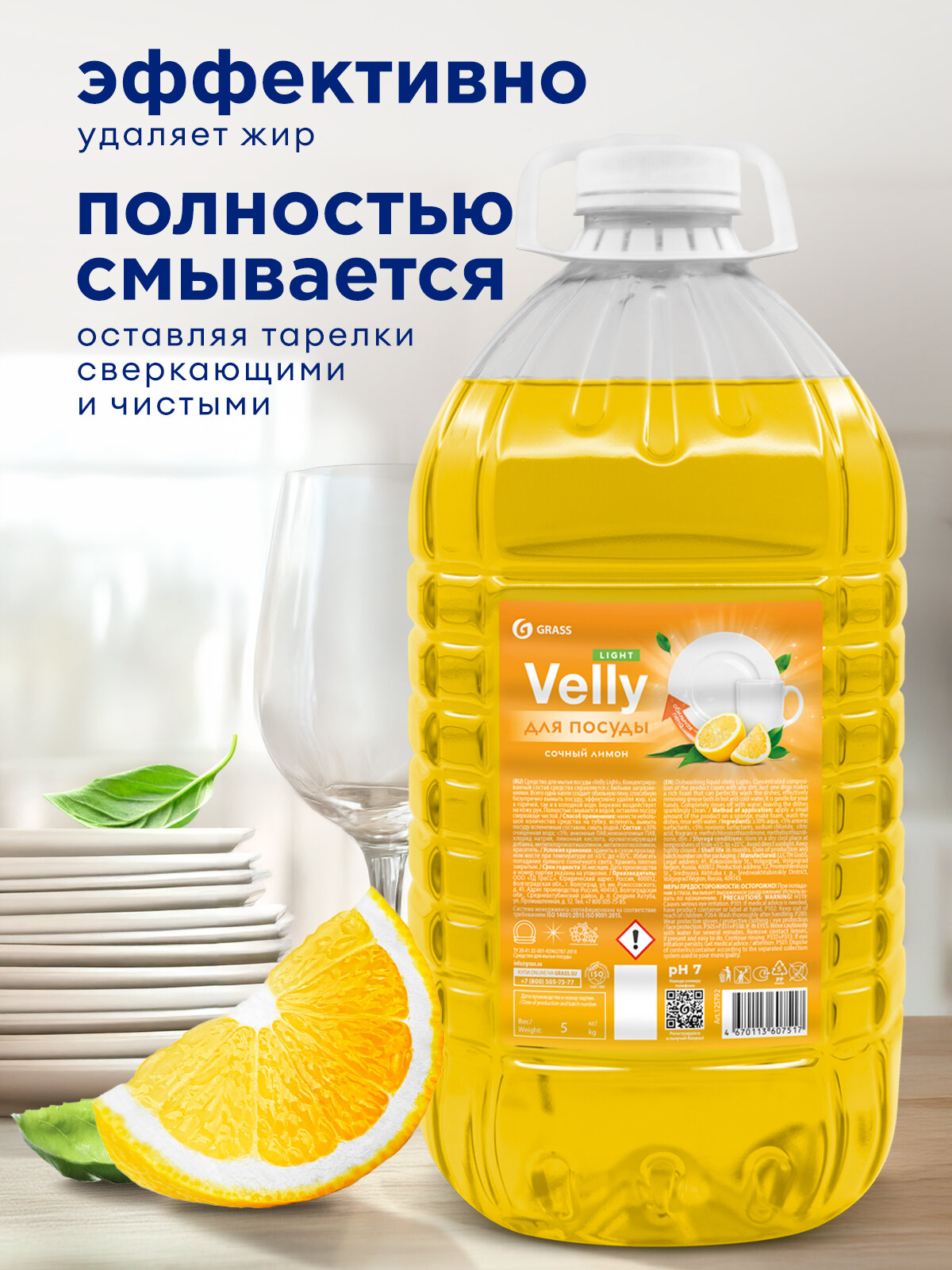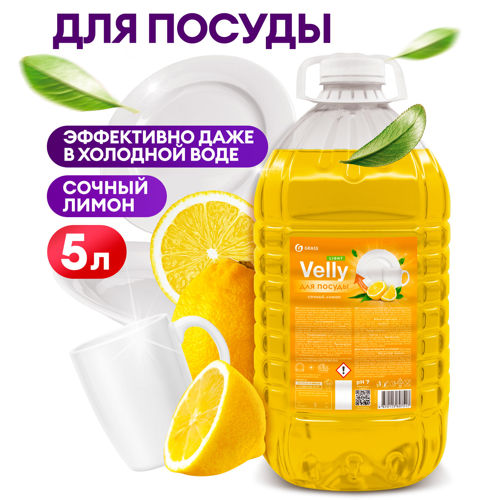 Grass Средство для мытья посуды Velly лимон универсальное моющее гель для кухни 5 литров