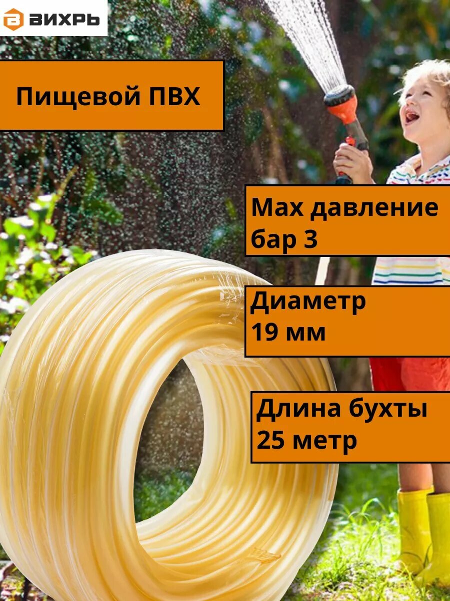 Шланг поливочный Вихрь ПВХ усиленный, пищевой трехслойный армированный 3/4, 25 м .