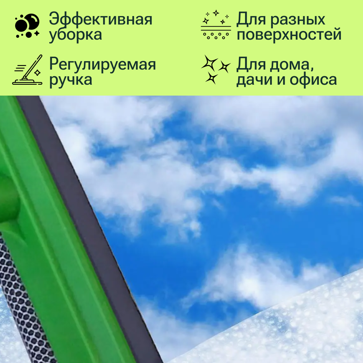 Швабра для мытья окон Master Fresh с губкой и сгоном рабочая часть 25 см телескопическая рукоятка 52-81 см, 1176978