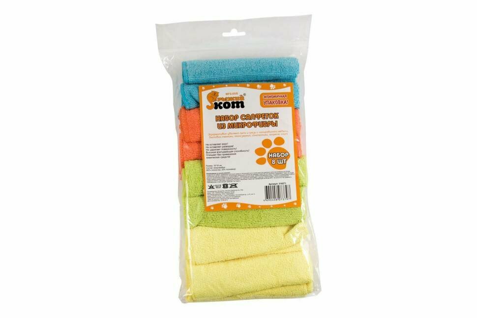 Купить Набор салфеток из микрофибры 8шт MFS-05/8, размер 30х30см
