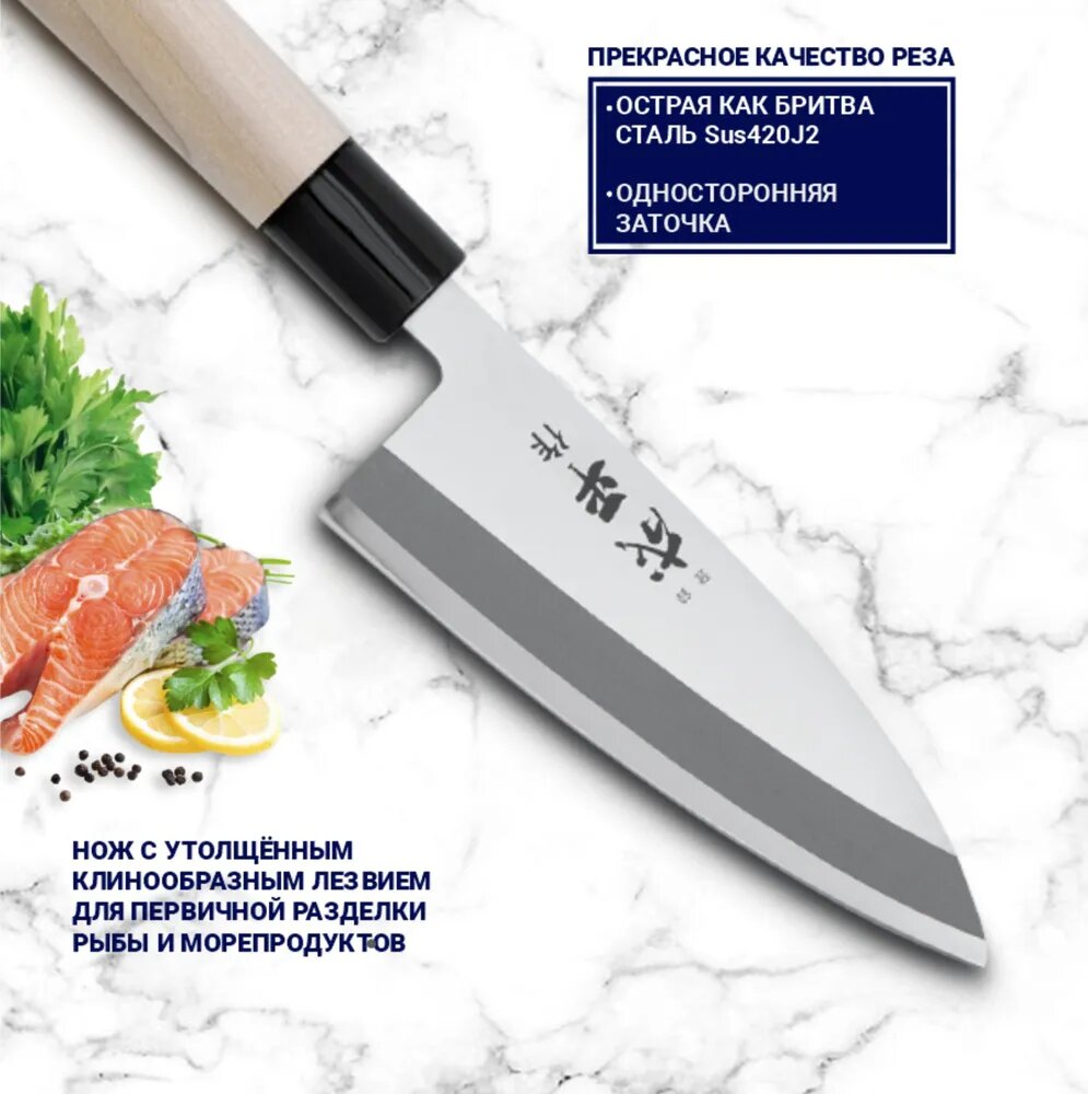 Нож Кухонный Деба, для рыбы Tojiro (FC-1073), длина лезвия 16,5 см, нержавеющая сталь, рукоять магнолия, Япония