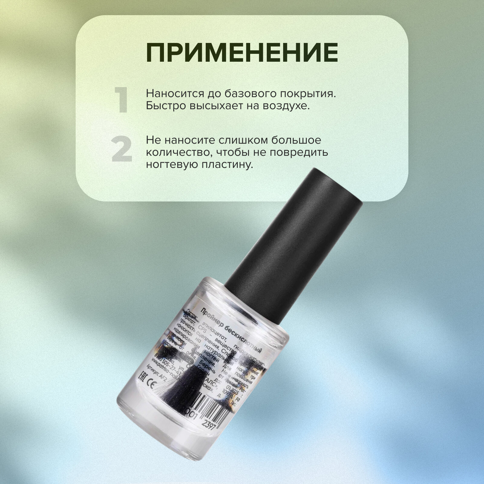 Праймер для ногтей Patrisa Nail бескислотный, для маникюра, 16 мл