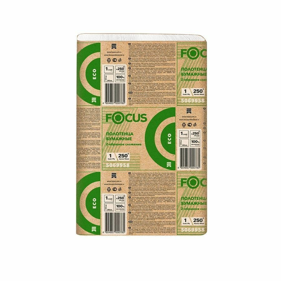 Полотенца бумажные для диспенсеров FOCUS Eco Zсл 1-слойные 12 пачек по 250 листов (артикул производителя 5069958)