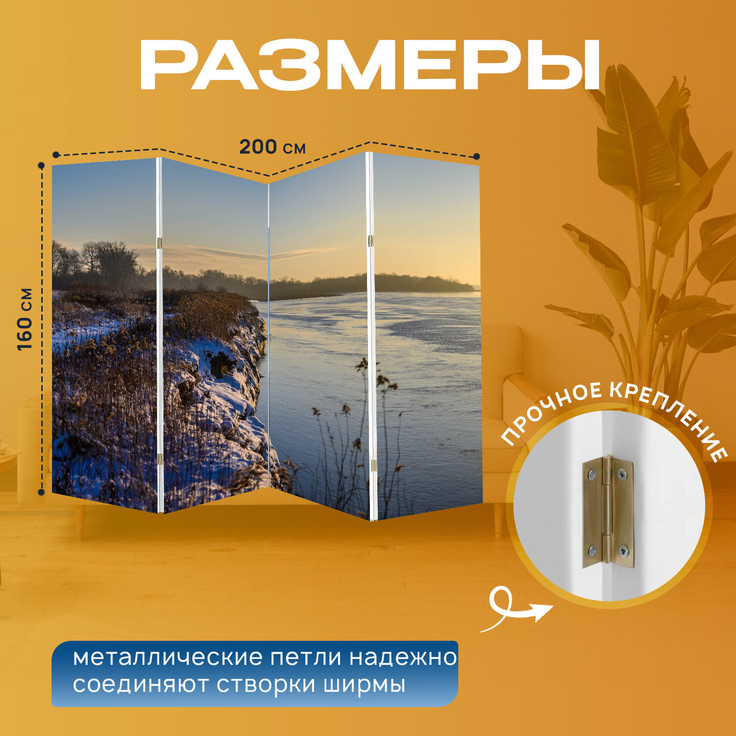 Ширма "Река, банк, камыши" перегородка для зонирования комнаты с принтом 280x175 см. на холсте