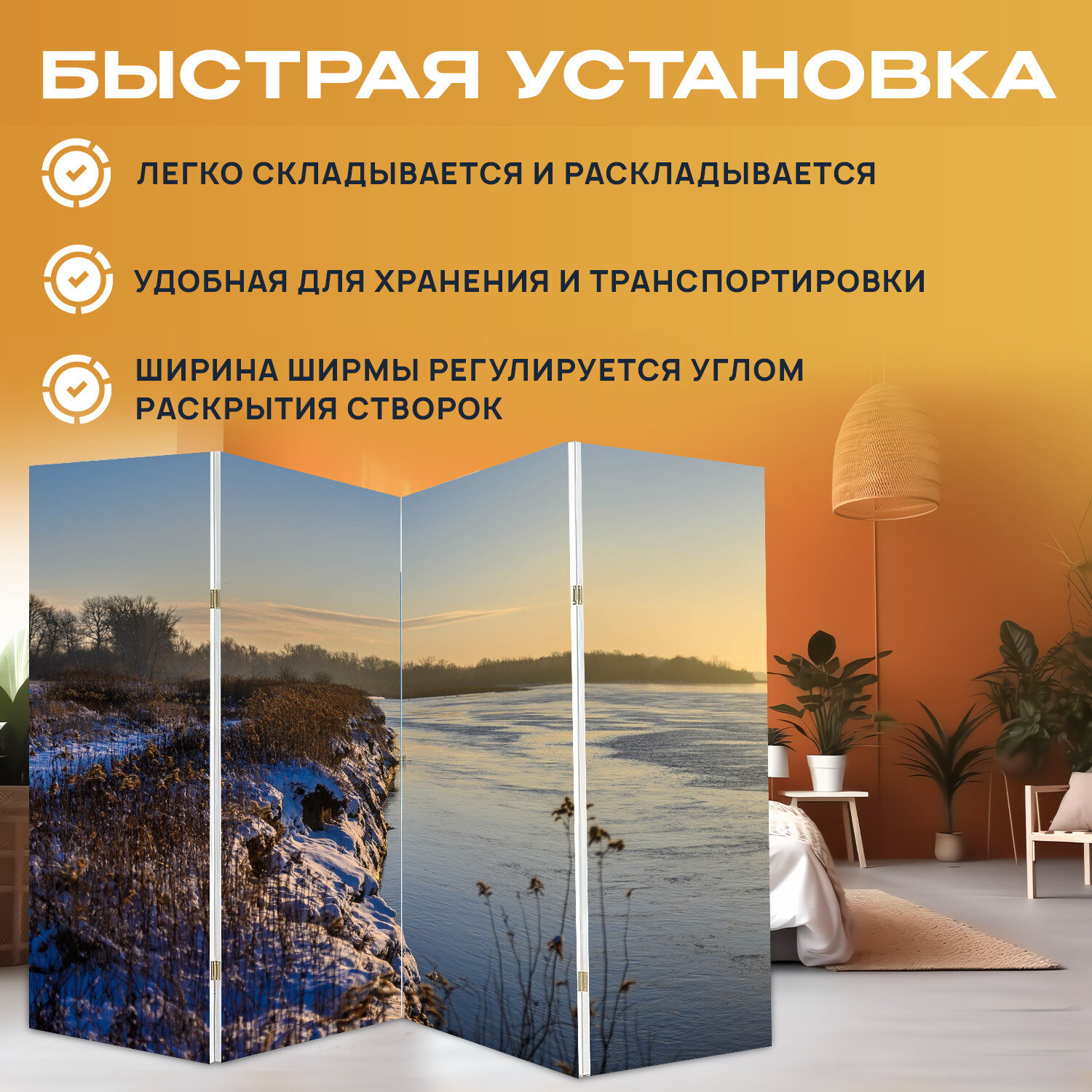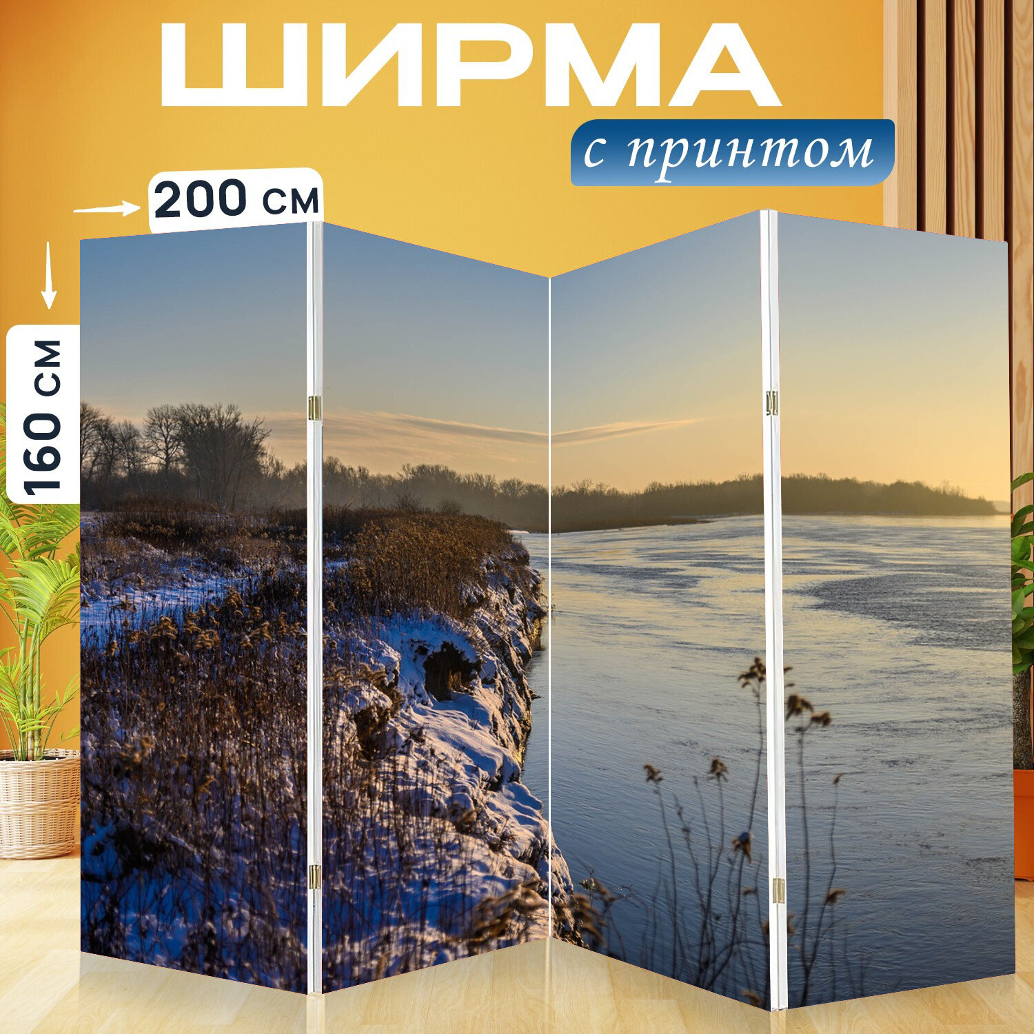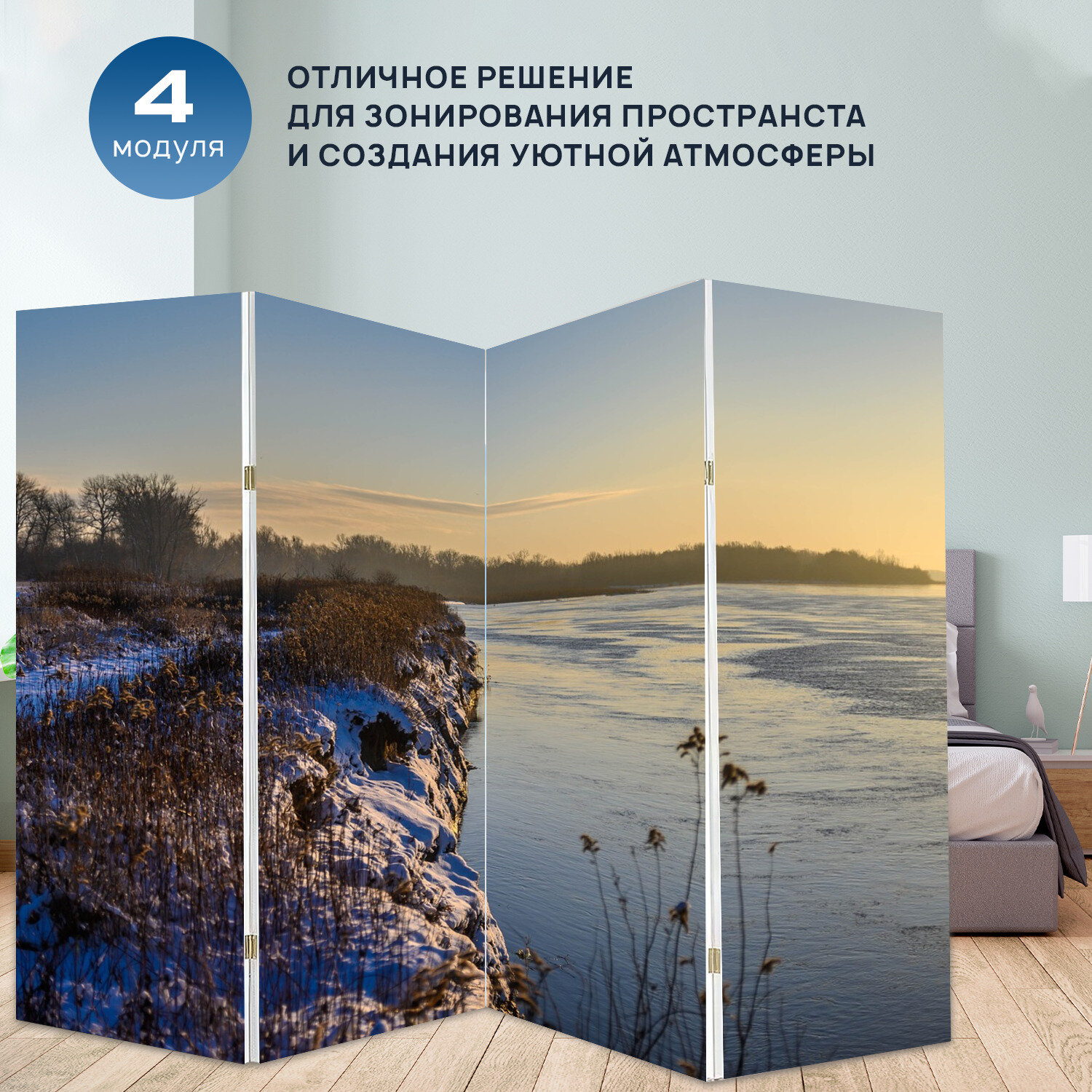 Купить Ширма "Река, банк, камыши" раскладная перегородка для зонирования с принтом на холсте