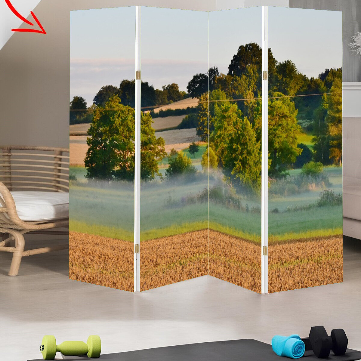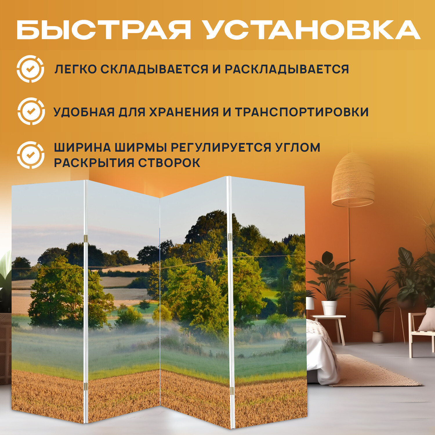 Ширма "Пейзаж, утром, рано" перегородка для зонирования комнаты с принтом 280x175 см. на холсте