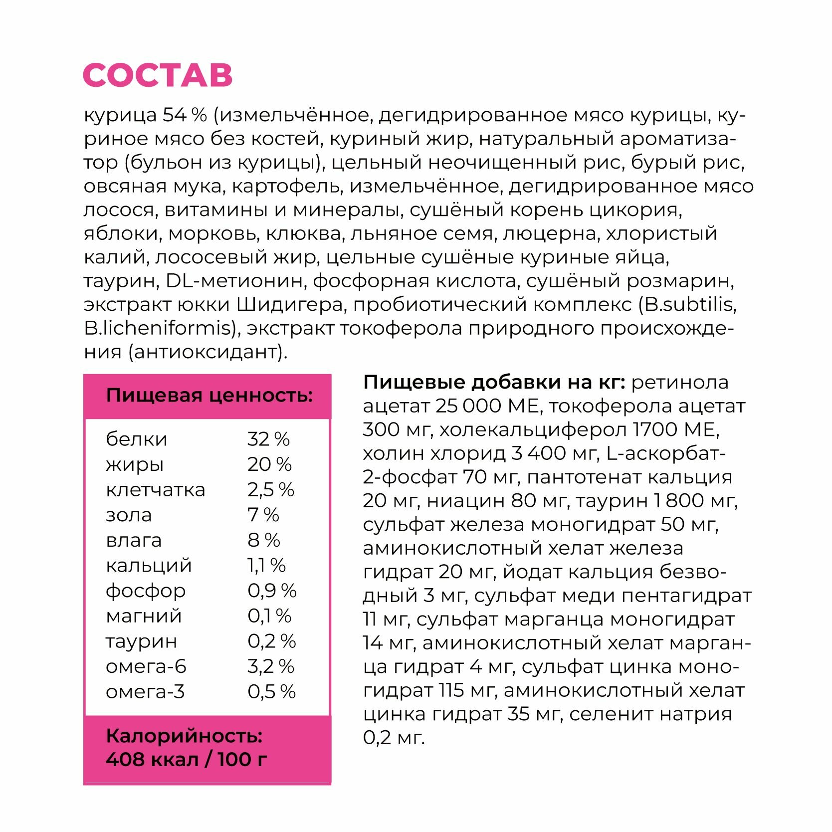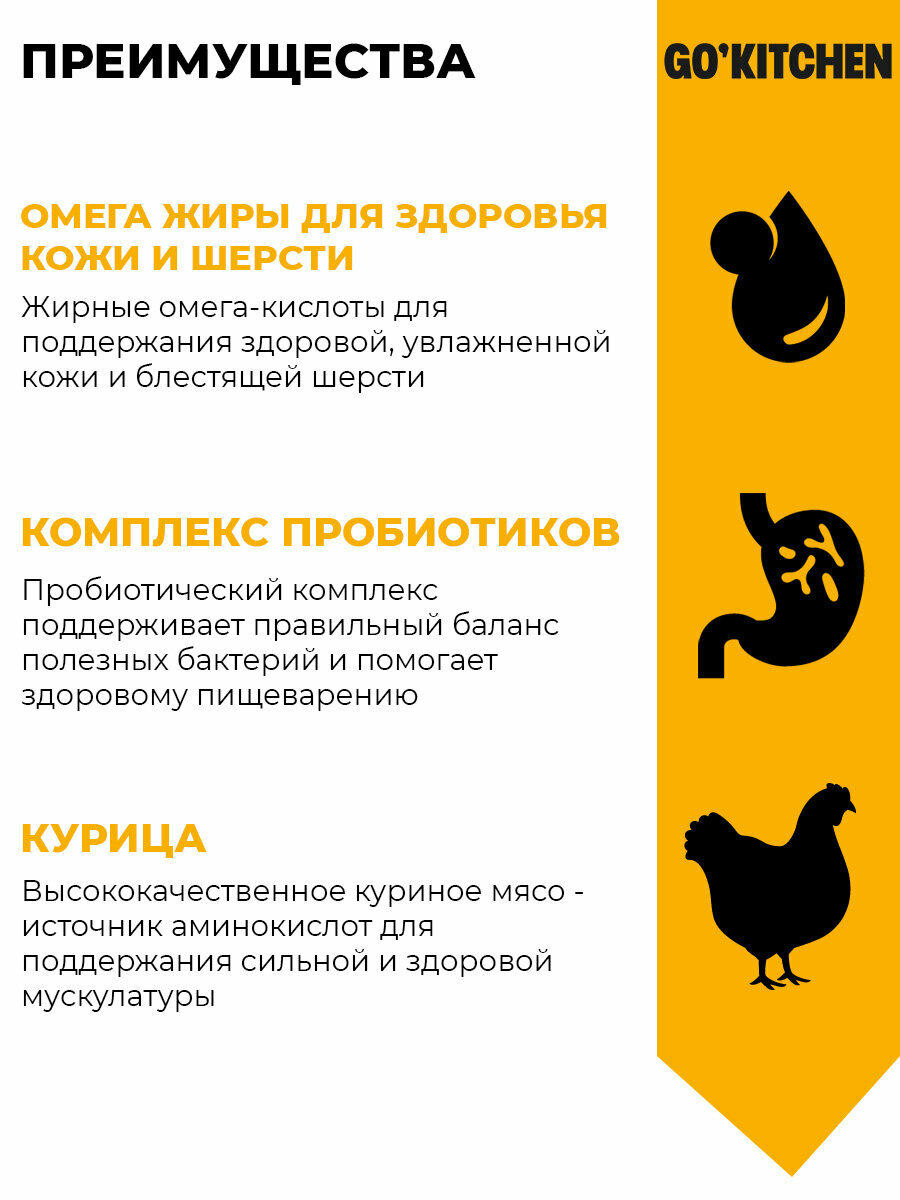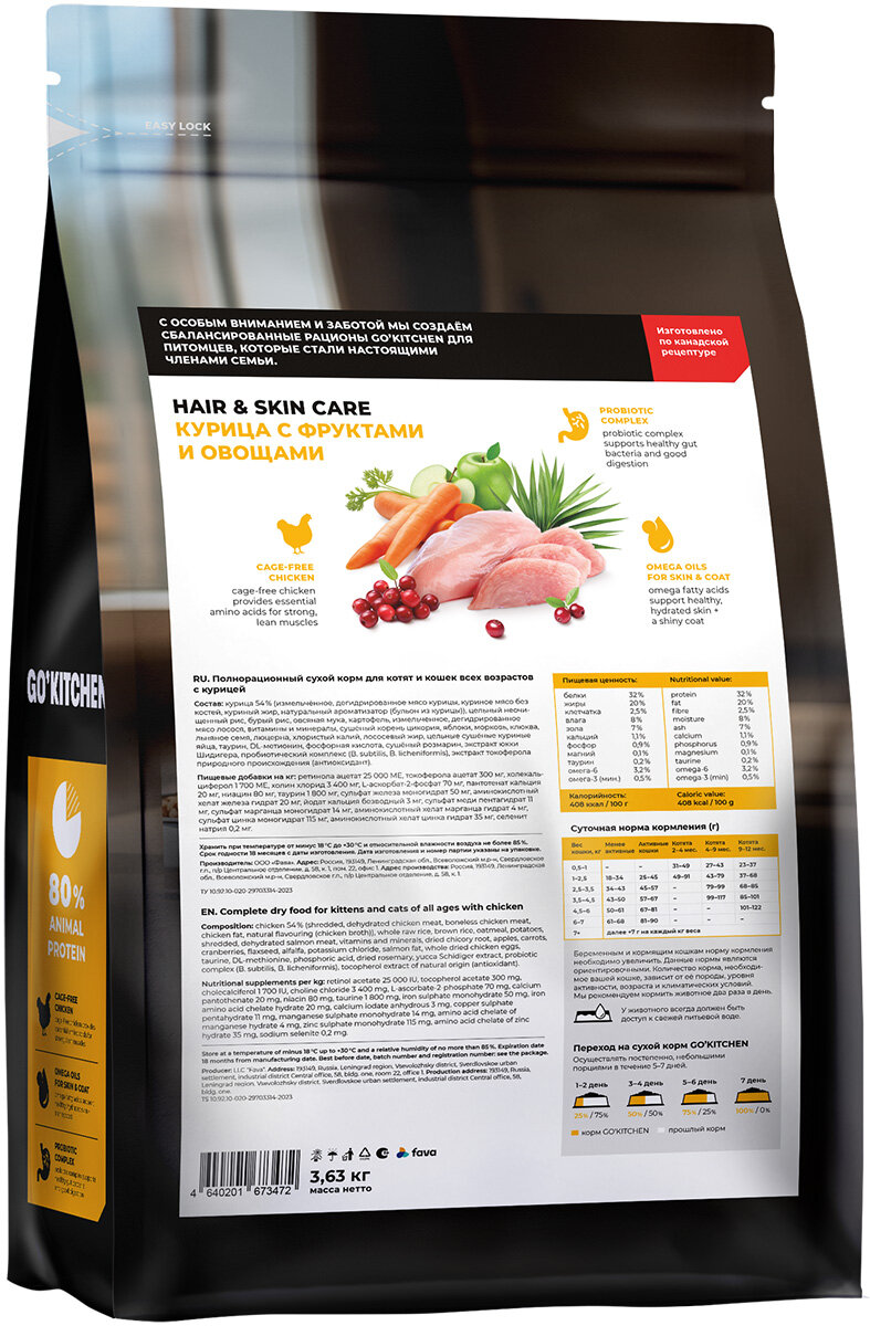 GO'KITCHEN сухой корм для котят и кошек всех возрастов со свежей курицей, фруктами и овощами, HAIR+SKIN CARE Chicken 1,36 кг