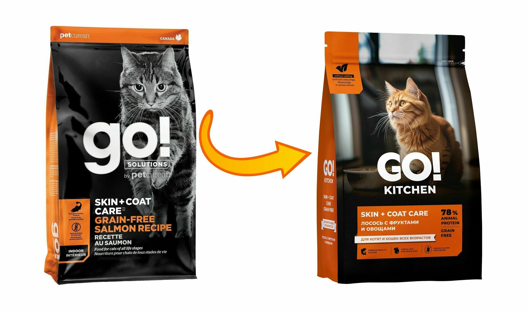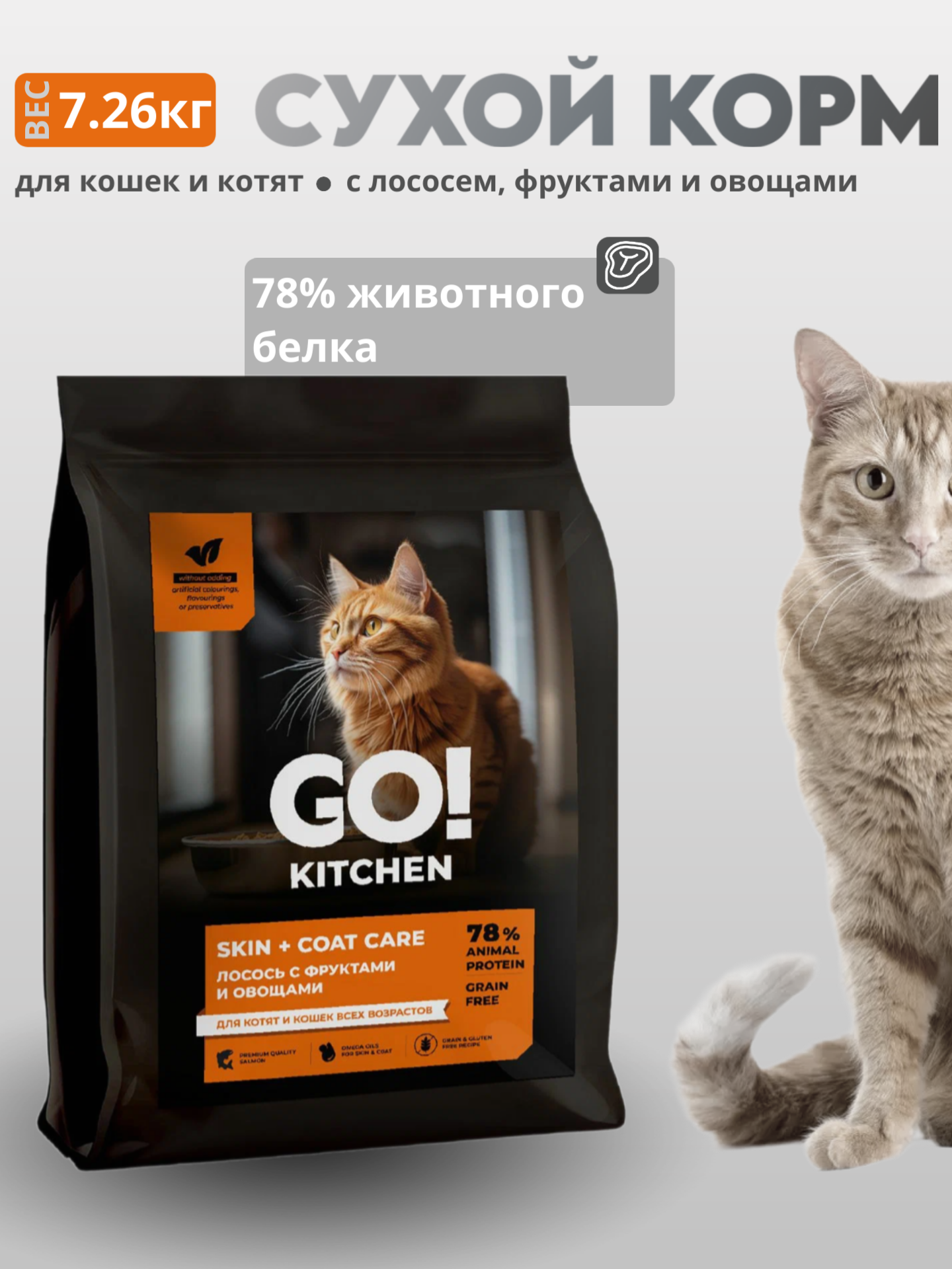 GO! KITCHEN Skin + Coat Care - Сухой корм для котят и кошек с лососем, фруктами и овощами (7,26 кг)