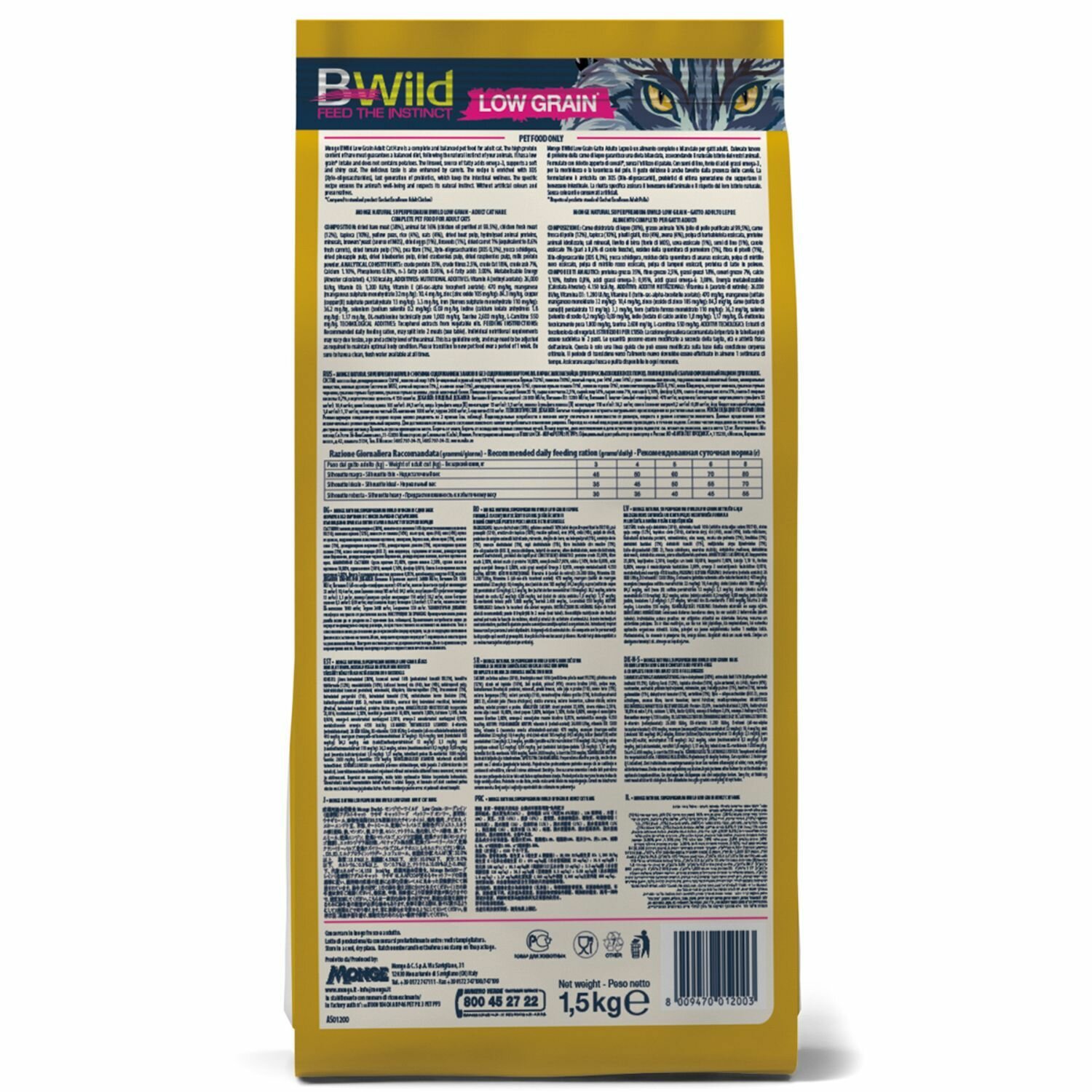 Купить Корм для кошек сухой Monge, низкозерновой, из мяса зайца 1,5 кг