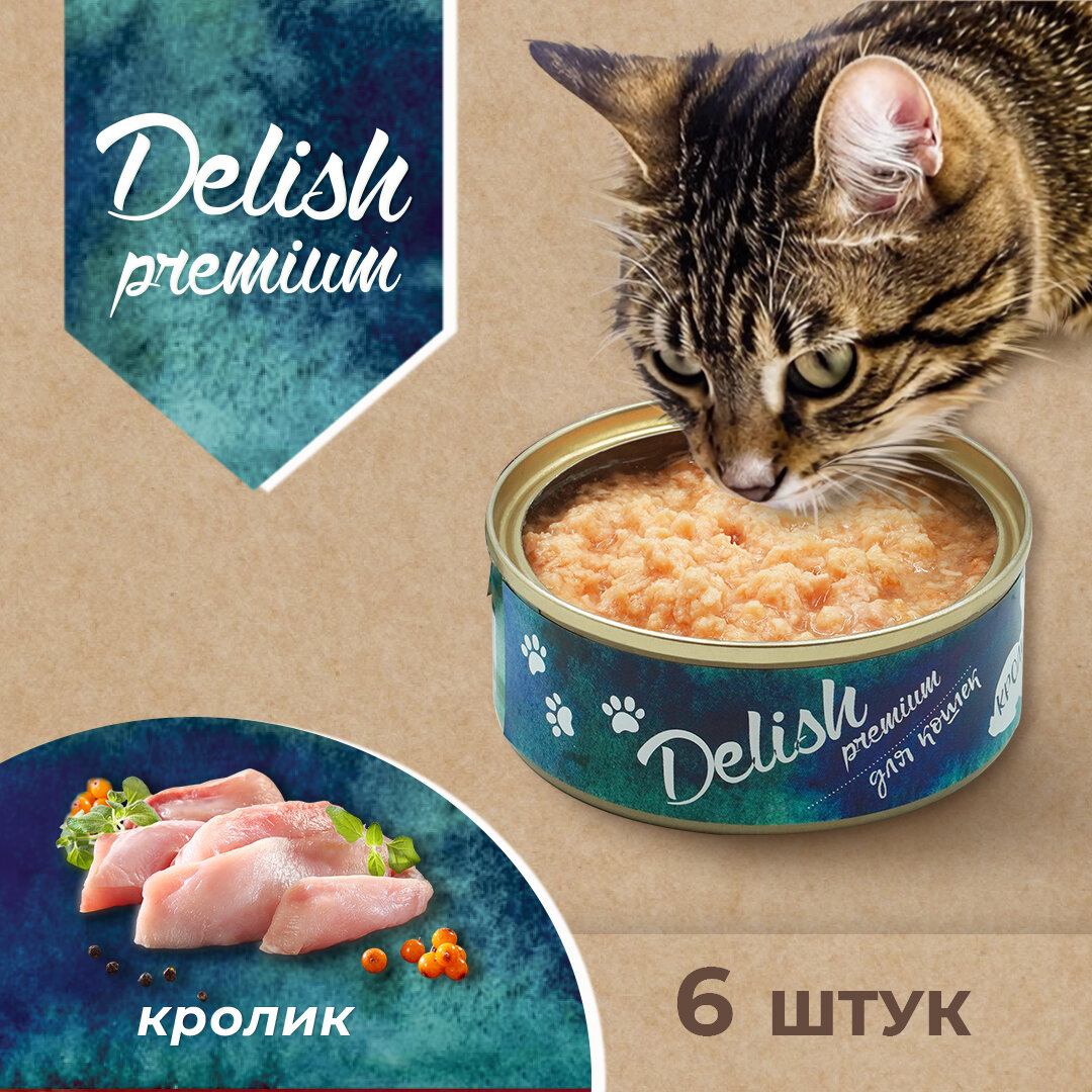 Купить Delish (Делиш) premium консервы для кошек, кролик, 6х100 гр (набор)