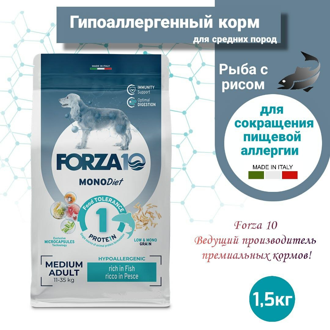 FORZA10 DOG MEDIUM MONODIET монобелковый для взрослых собак средних пород при аллергии с рыбой (1,5 кг)