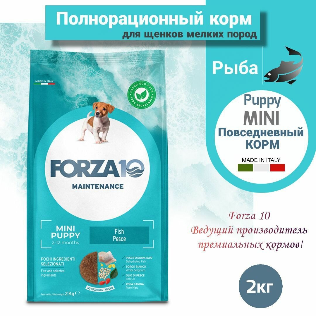 Корм сухой Forza10 "Maintenance" для щенков мелких и средних пород с 2,5 месяцев, для собак в период беременности и лактации, с рыбой, 2 кг