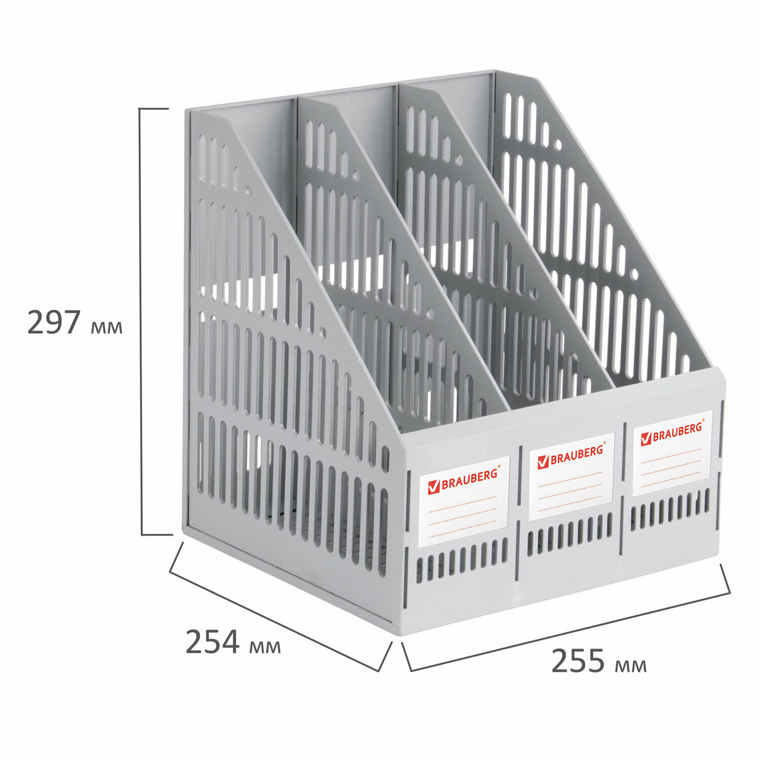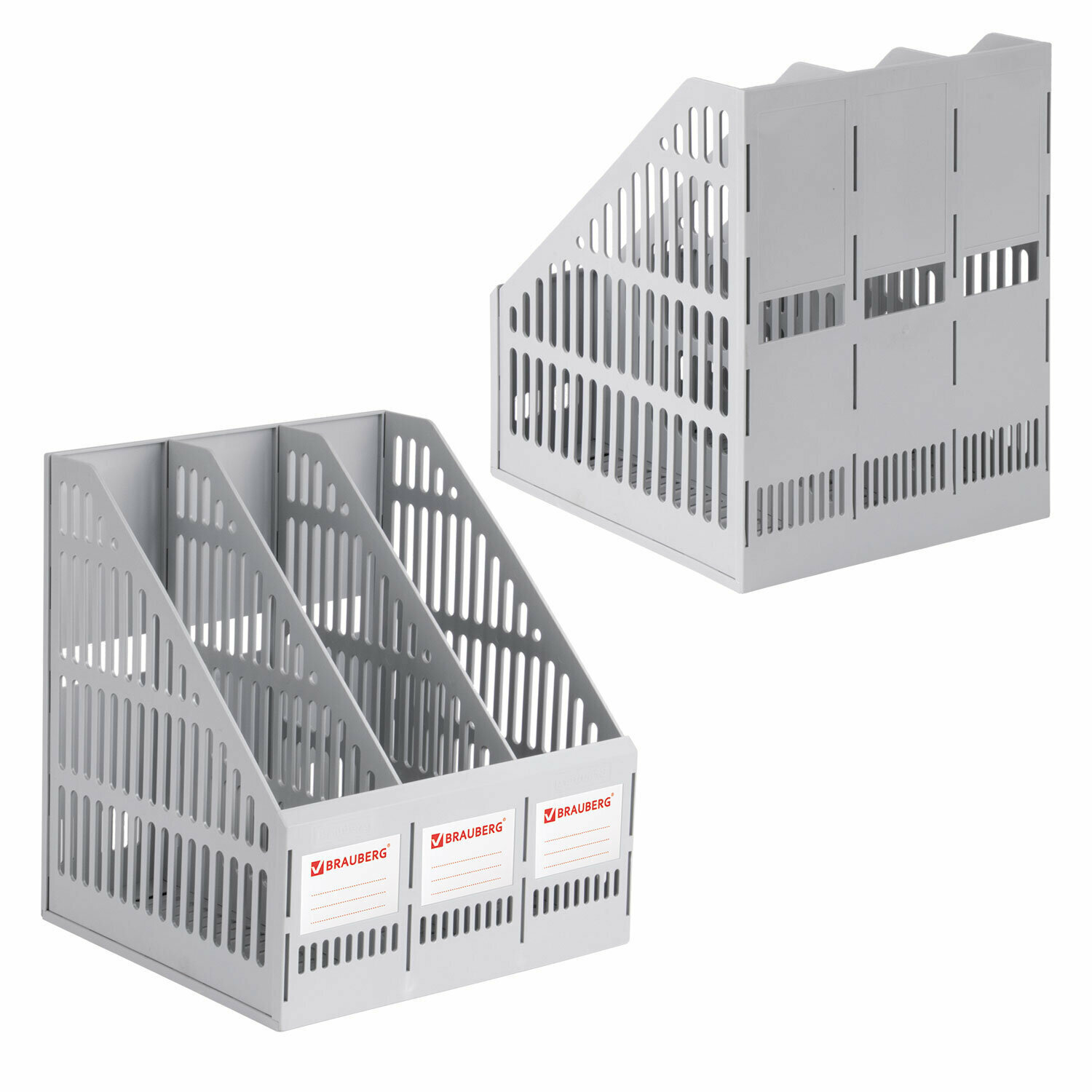 Вертикальный накопитель BRAUBERG Smart-Maxi, ширина 255 мм, 3 отделения, сетчатый, сборный, серый