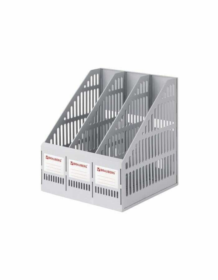Лоток для бумаг Brauberg Вертикальный Smart-Maxi, ширина 255 мм, 3 отделения, серый (231524)
