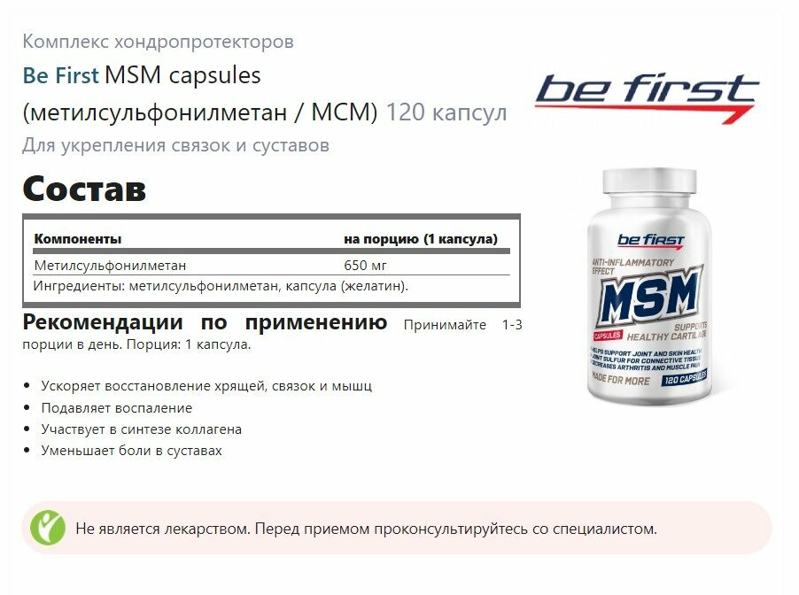 Be First MSM 650 мг (120 капс) интересное: