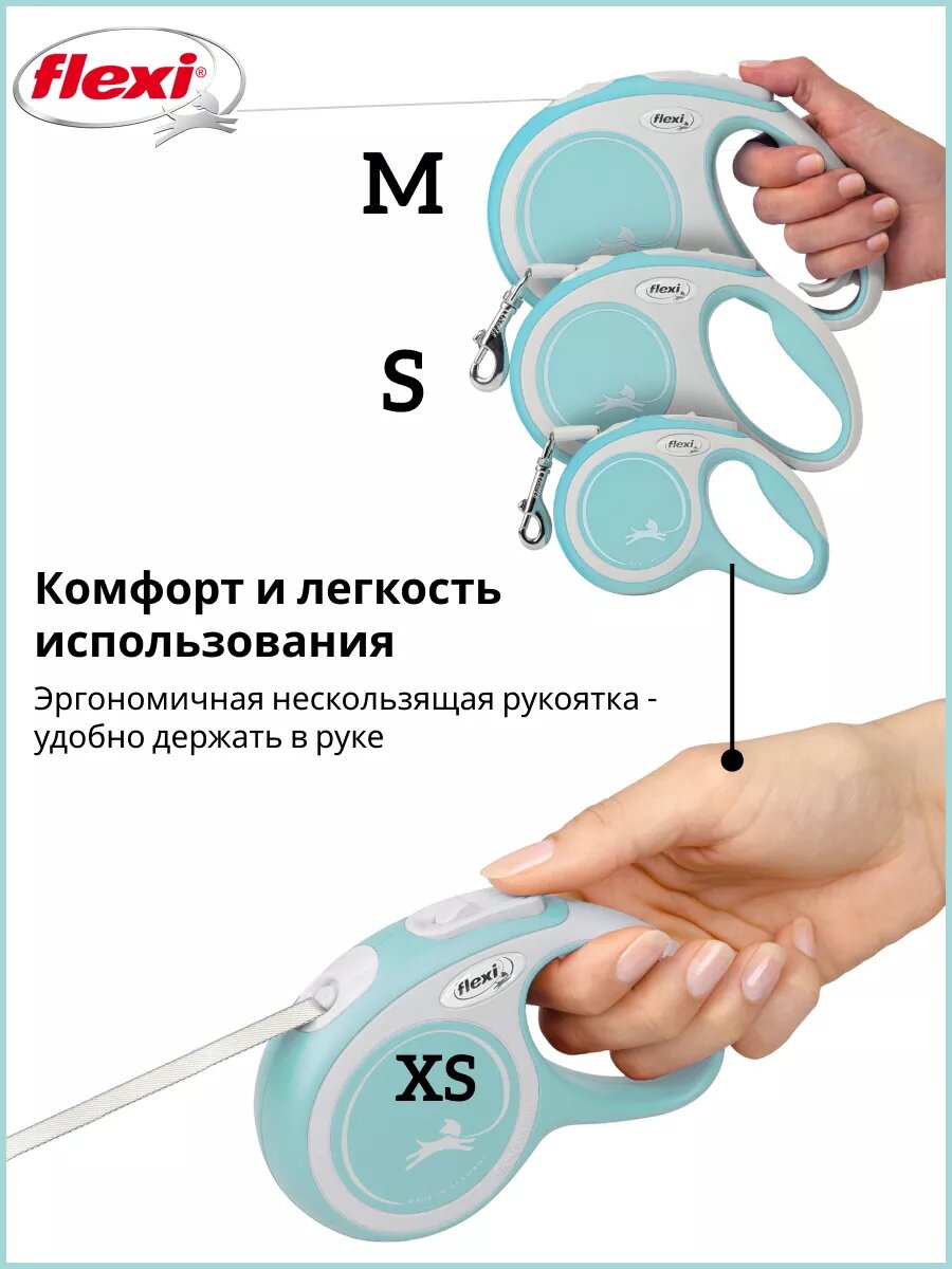 СохранитьПоводок-рулетка для собак Flexi New Comfort XS, лента 3 метра, цвет - голубой/серый интересное: