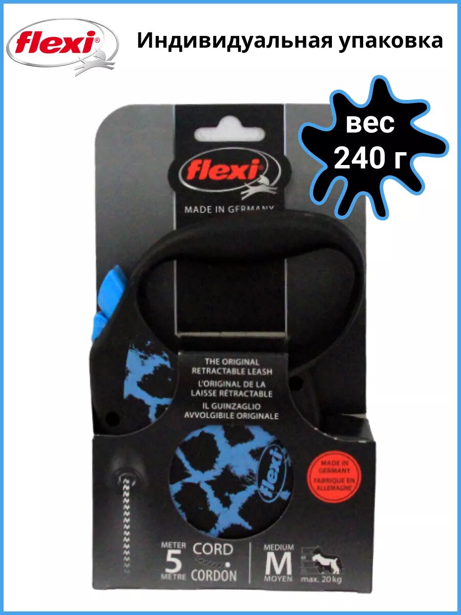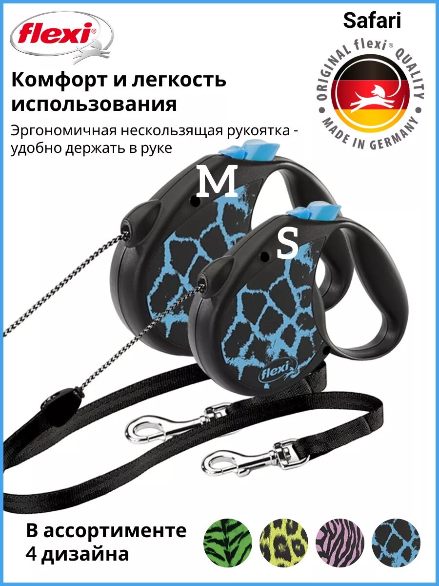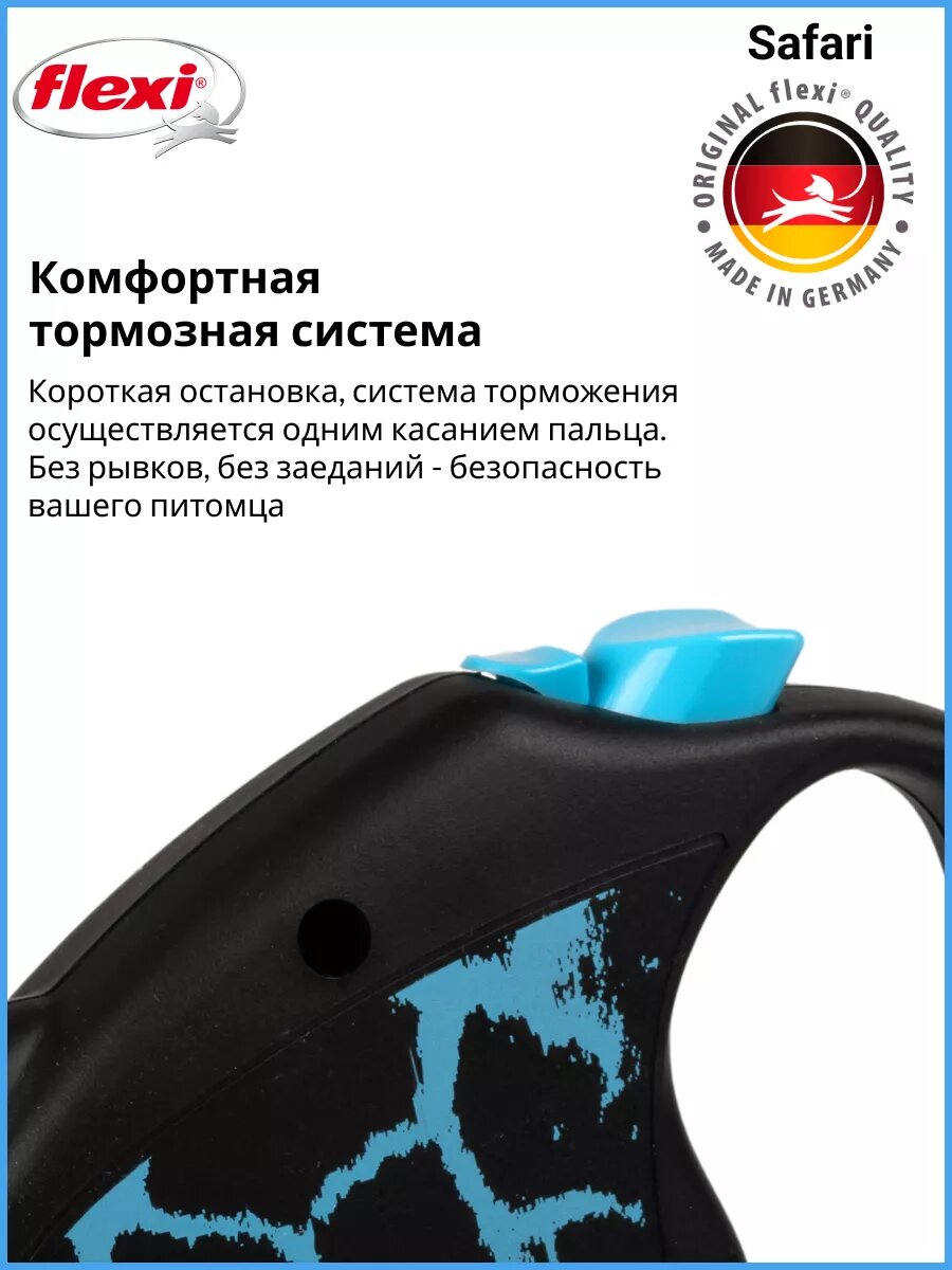 СохранитьРулетка-поводок для собак Flexi Safsri cord М 5м до 20кг трос голубой жираф 1/1 интересное: