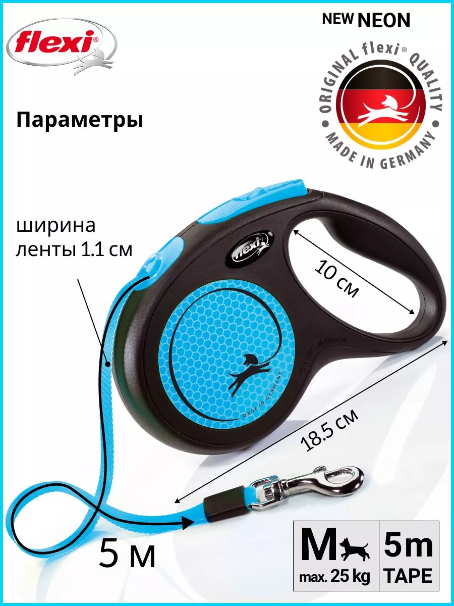 Поводок-рулетка Flexi New Neon tape M, 5 м, 25 кг, синий