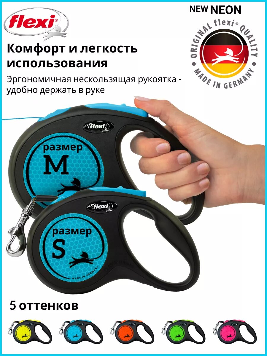 flexi рулетка Neon M (до 25 кг) лента 5 м .