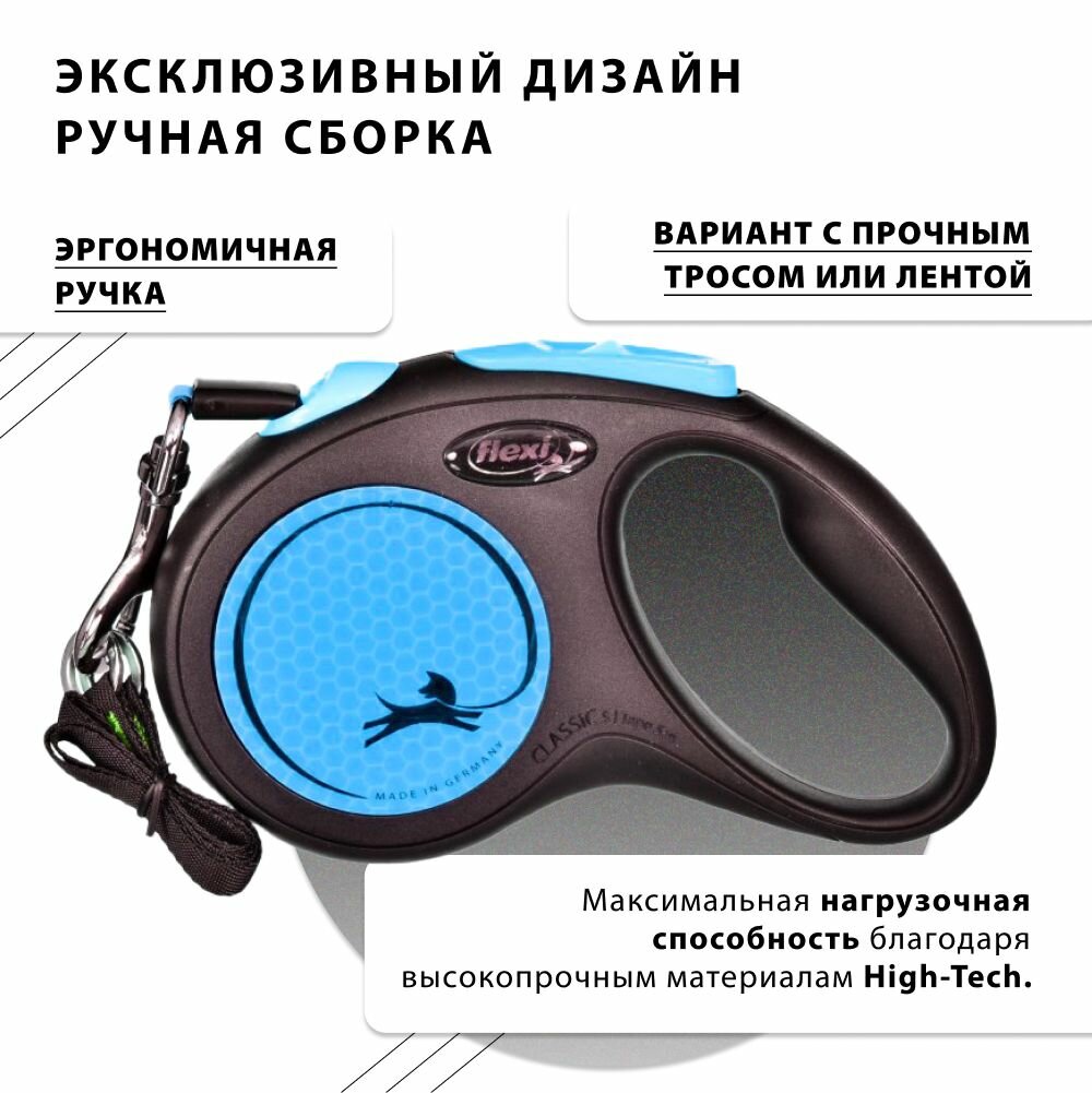 flexi рулетка Neon Classic M до 25 кг лента 5 м светоотражающая голубой неон .