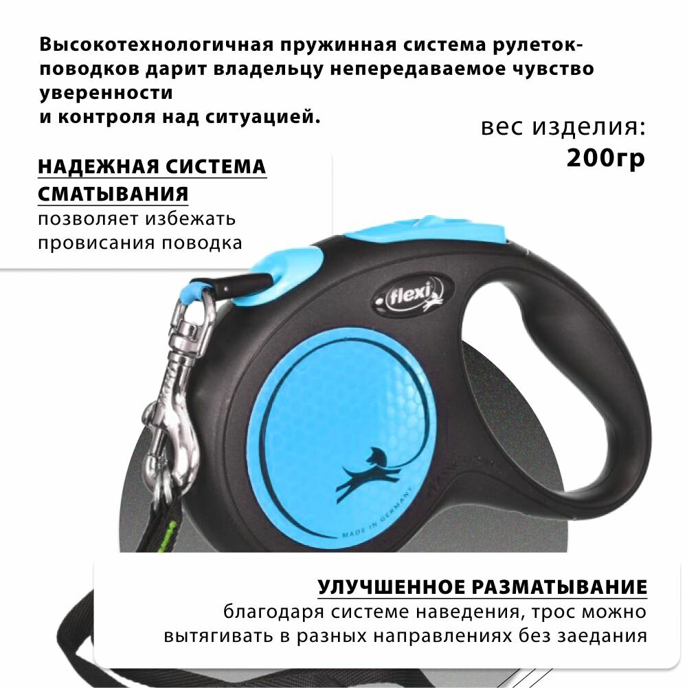 Поводок-рулетка Flexi New Neon лента S 5 м 15 кг синий