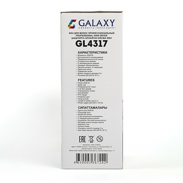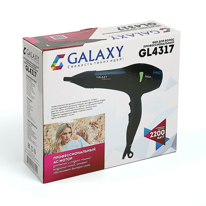 Купить Фен GALAXY LINE GL4317, профессиональный, мощность 2200Вт, чёрный