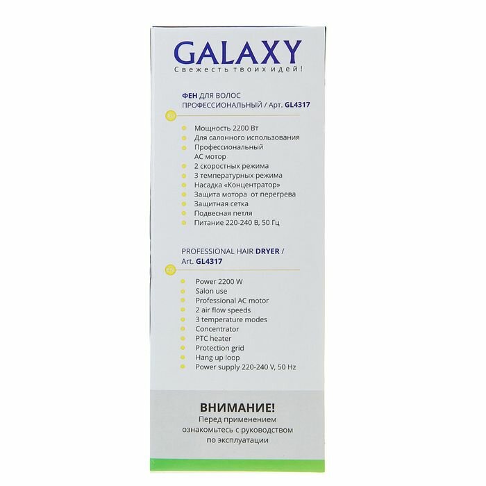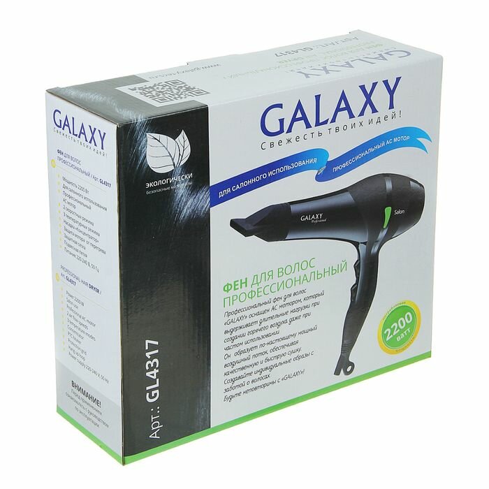 Фен GALAXY LINE GL4317, профессиональный, мощность 2200Вт, чёрный интересное: