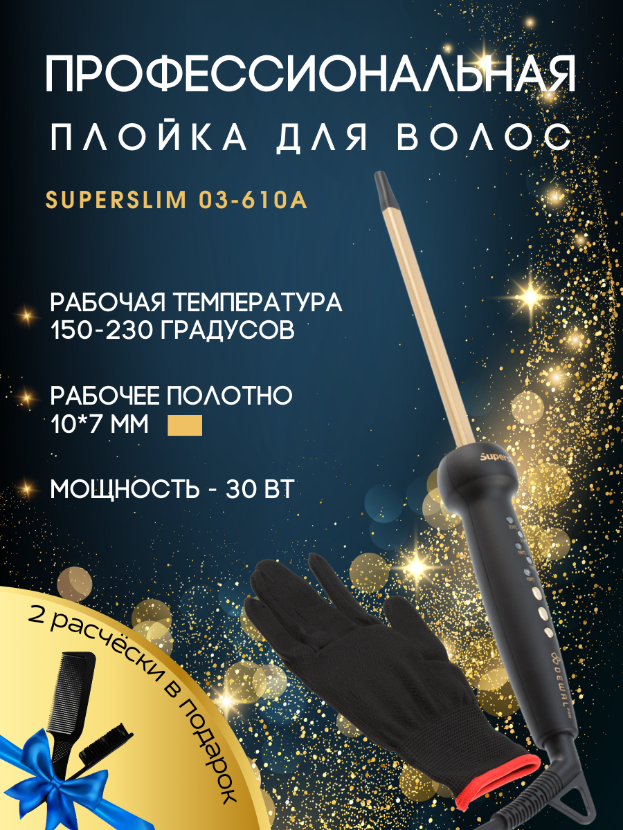 Плойка для волос DEWAL SUPERSLIM, 10х7 мм, 30Вт DEWAL MR-03-610A