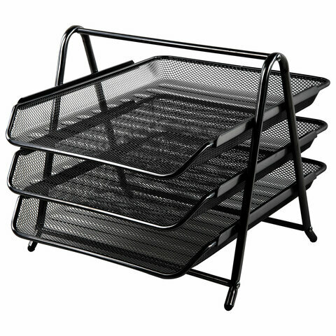 Лоток для бумаг горизонтальный, 3 отделения BRAUBERG Germanium, металлическая сетка, чёрный