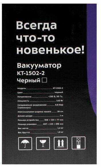 Вакуумный упаковщик KITFORT КТ-1502-2, чёрный