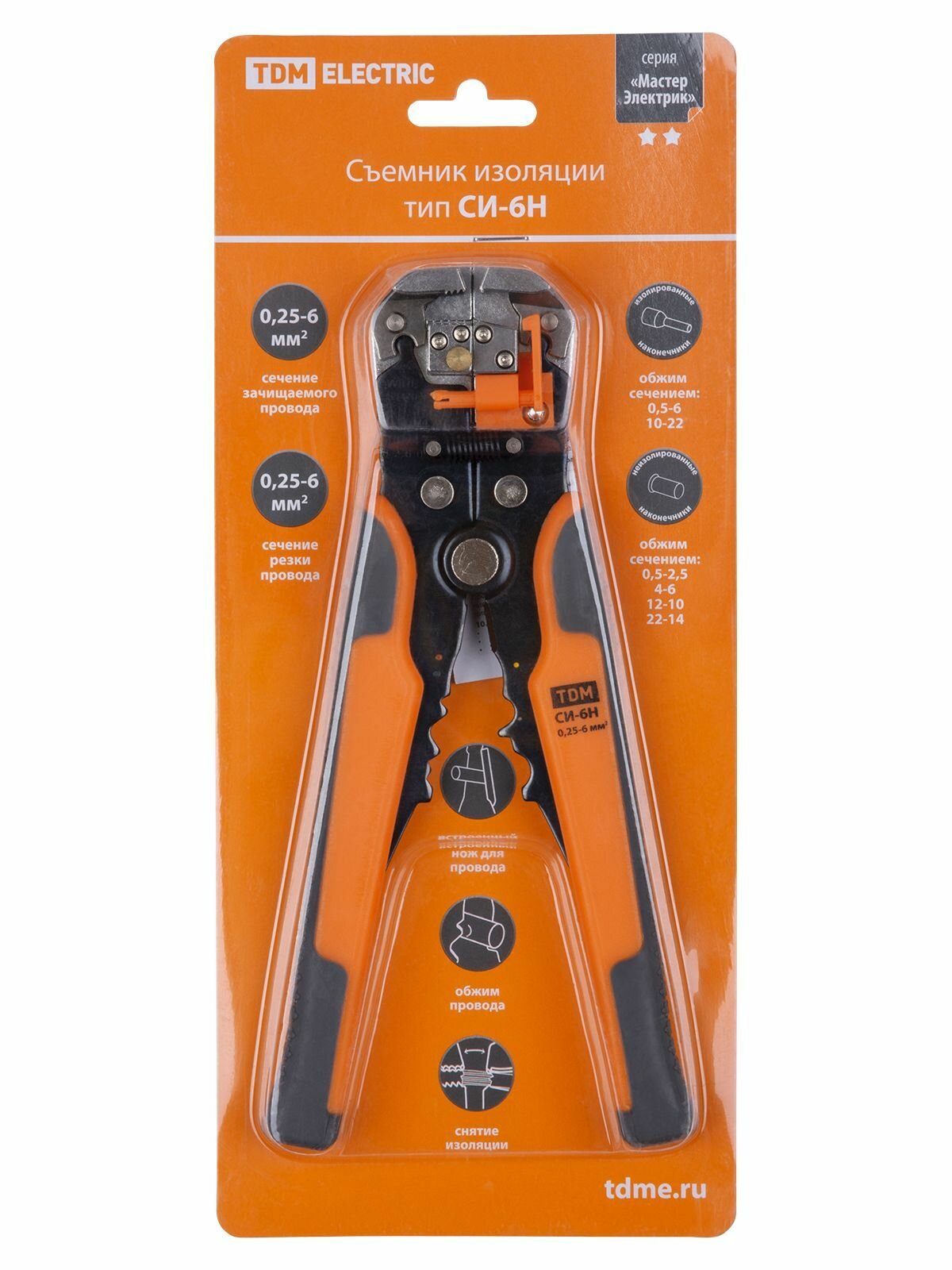TDM Съемник изоляции автоматический СИ-6А, сечение зачищаемого провода 0,25-6 мм "МастерЭлектрик" SQ1003-0103