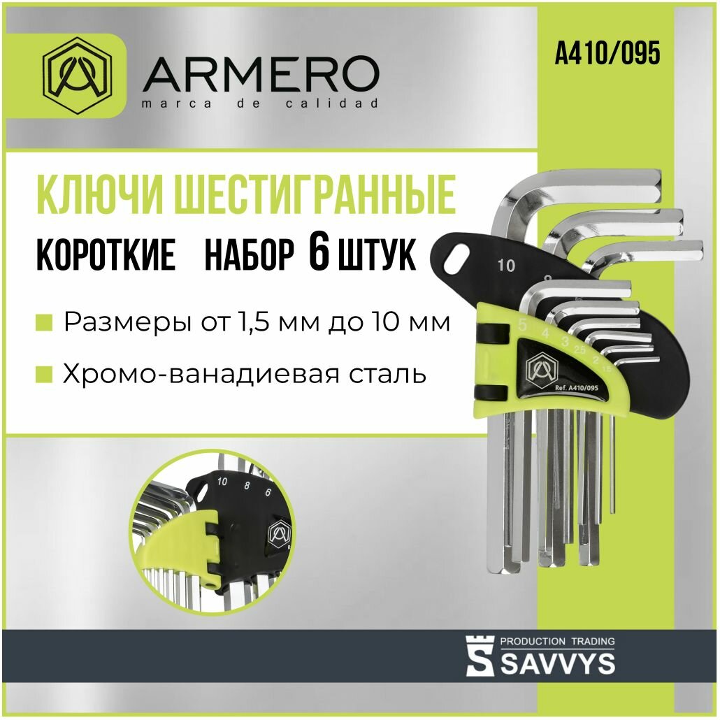 Armero Набор шестигранных ключей, короткие Armero, A410/095