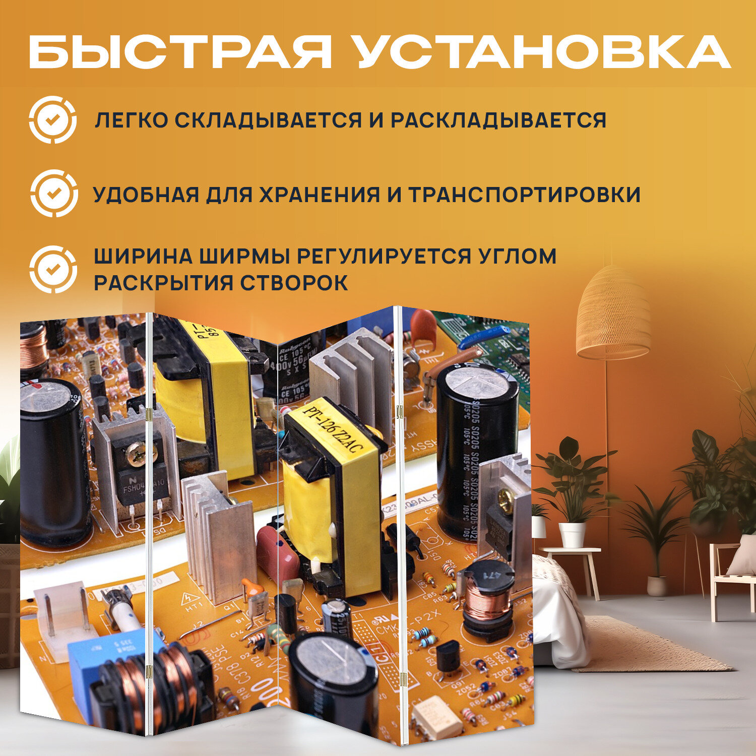 Ширма "Микропроцессор, процессор, технология" раскладная перегородка для зонирования с принтом на холсте интересное: