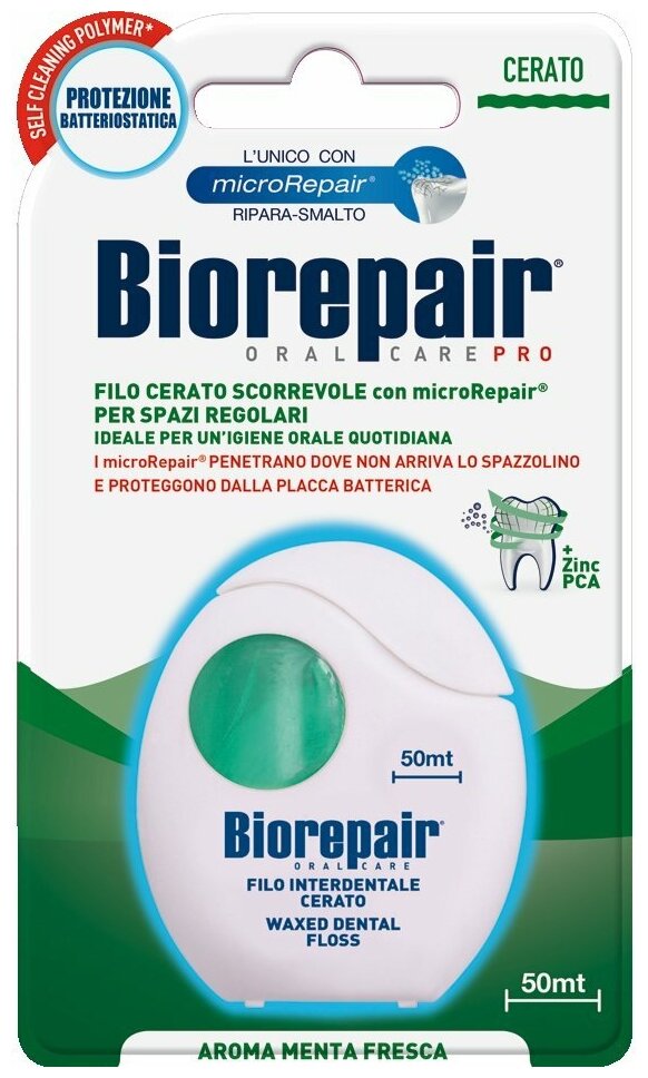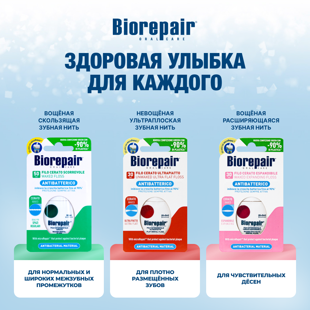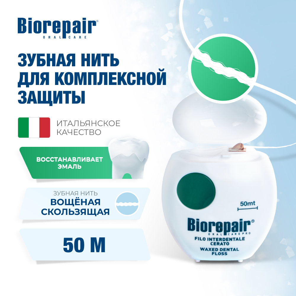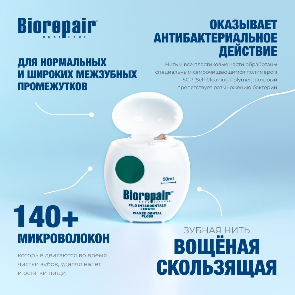 Зубная нить Biorepair вощеная скользящая, 50 метров