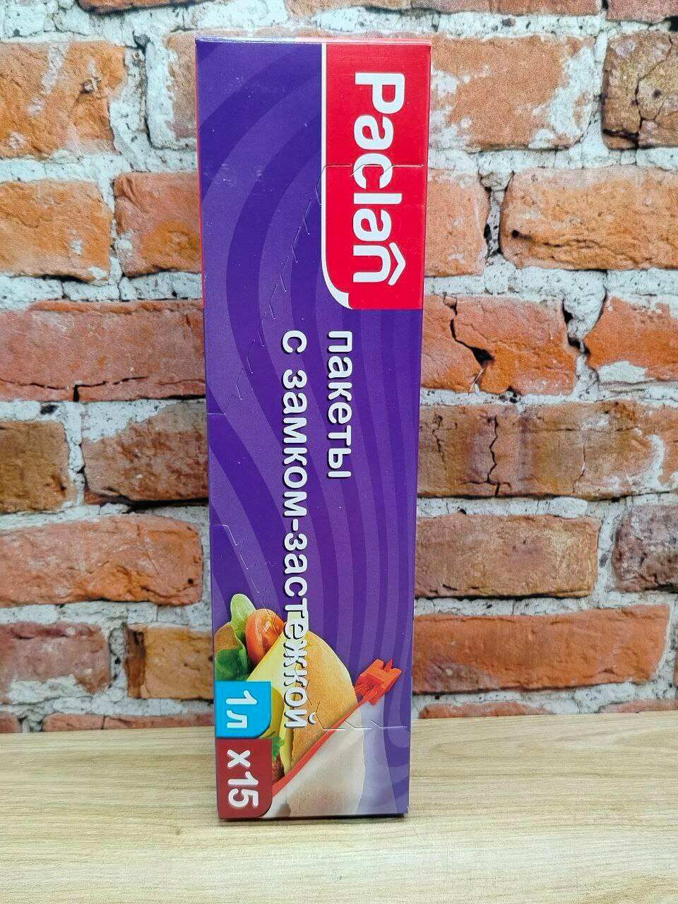 Купить Пакеты фасовочные пищевые для хранения продуктов, с застежкой, 15 шт, 1 л, 22 х 18 см, Paclan