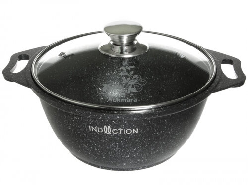 Марбл Индукция Мраморная темная Кастрюля литой алюминий 3л Kukmara
