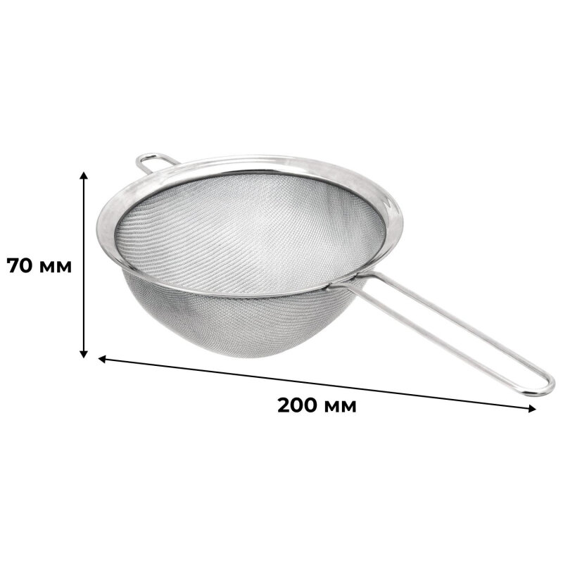 | Плюсы: | Глубокая сетка! Для процеживания большого количества всякой кондитерской дребедени (сока, крема, пюре) самое то! Удобно просеивать муку и какао, хорошо лежит на ёмкости, не падает.