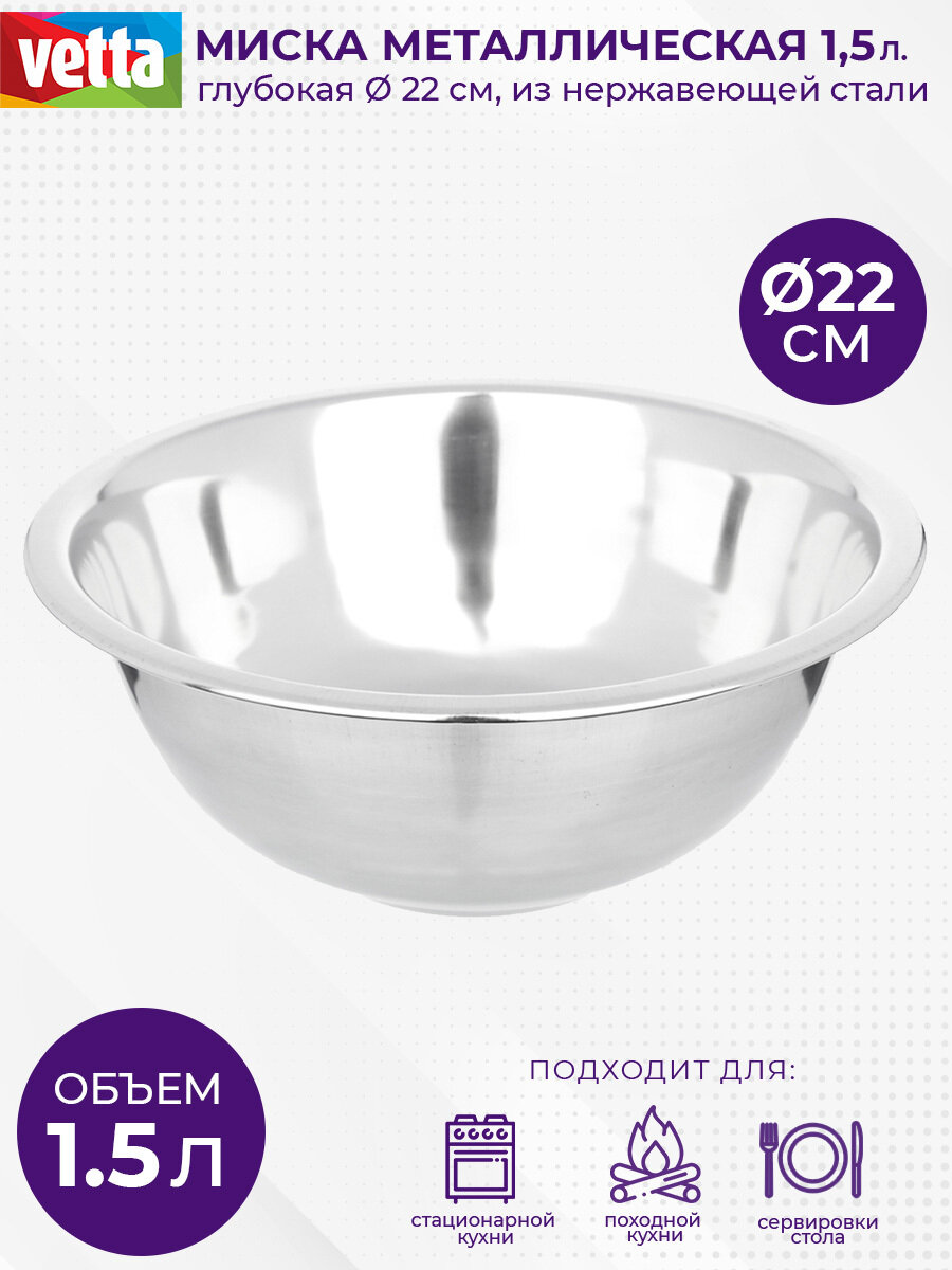 Металлическая миска VETTA 1.5 л, 22 см, нержавеющая сталь, серебристая интересное: