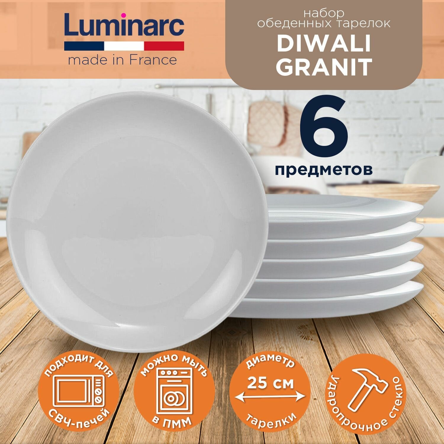 Набор обеденных тарелок Luminarc Diwali Granit 25 см, 6 шт