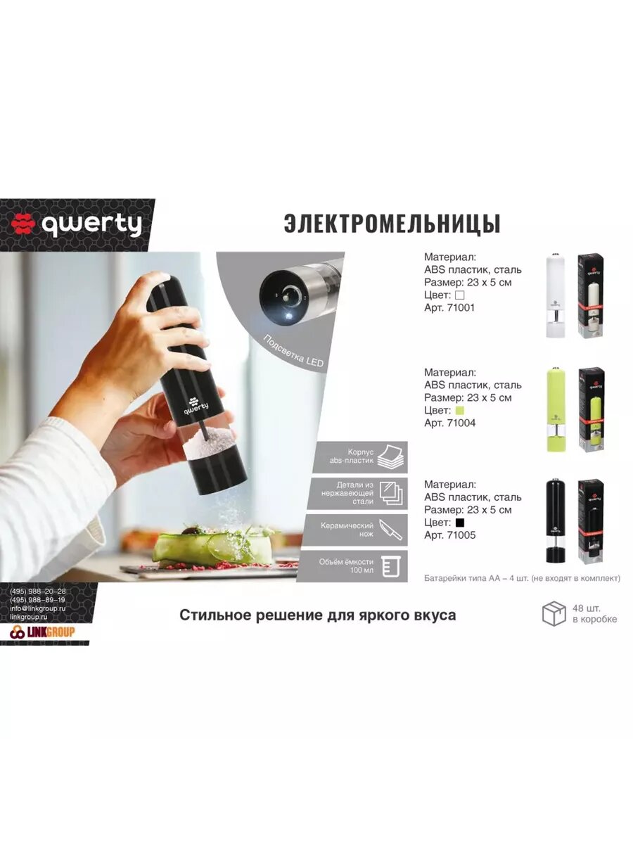 Qwerty Электромельница перец/соль, цвет черный, 5x23 см, на батарейках 4хАА 71005 .