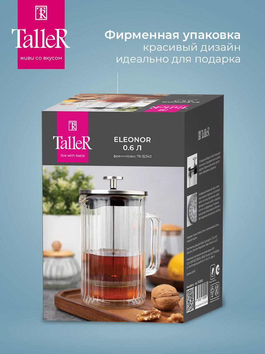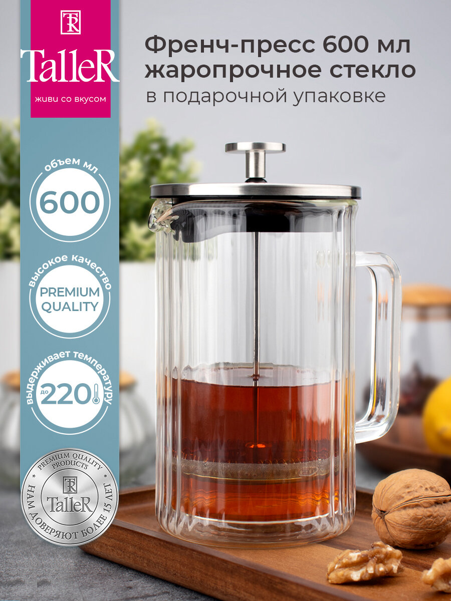 Купить Френч-пресс TalleR TR-32342 Элеонор 600 мл, нержавеющая сталь, боросиликатное стекло
